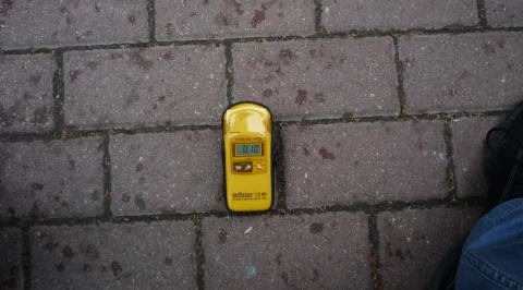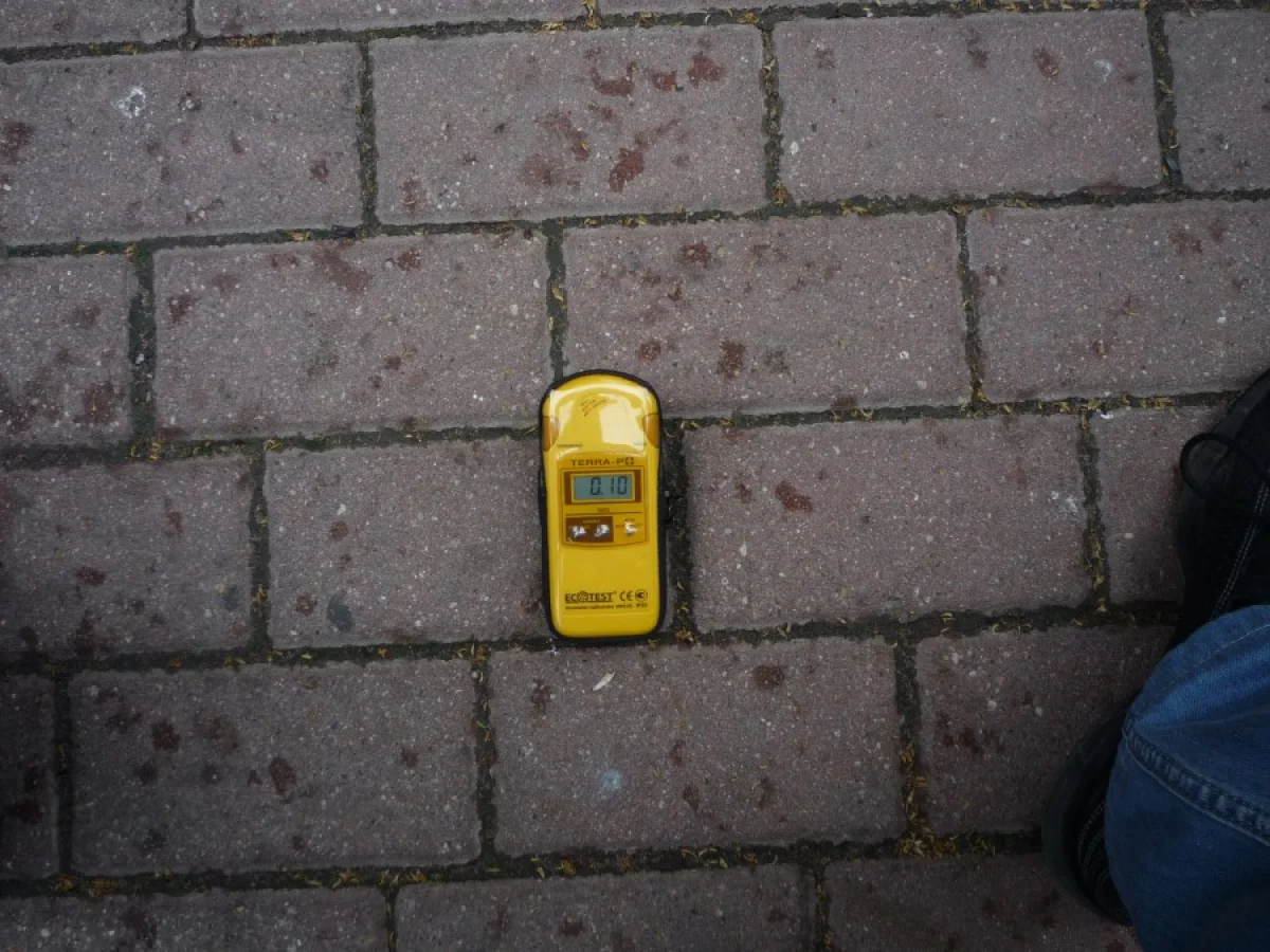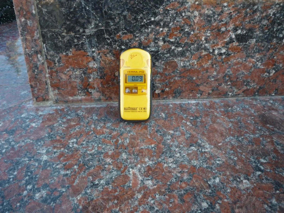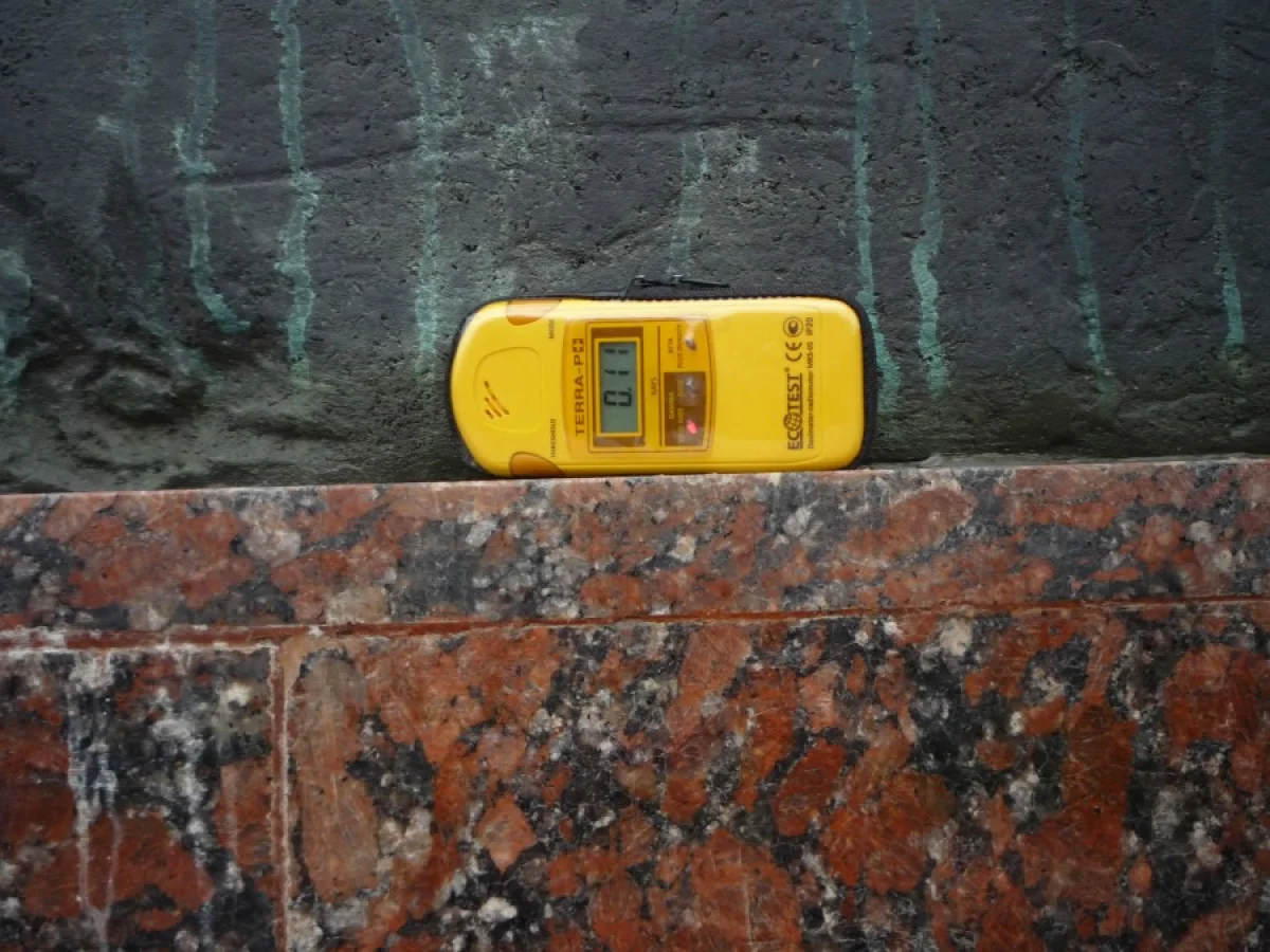 Показометр на фото, величина измерения микроЗиверт (мкЗв, µSv), как видно у основания памятника получены цифры 0.11, у основания постамента 0.09, и 0.10 просто на плитке площади. Хоть что-то значащие величины начинаются с 0.2-0.3 µSv. Всё что меньше - нормальный естественный фон! Также напомню, мощность излучения падает пропорционально квадрату расстояния и в 10 метрах она уже в 100 раз меньше чем в 1м.