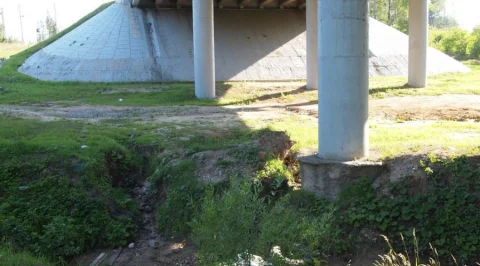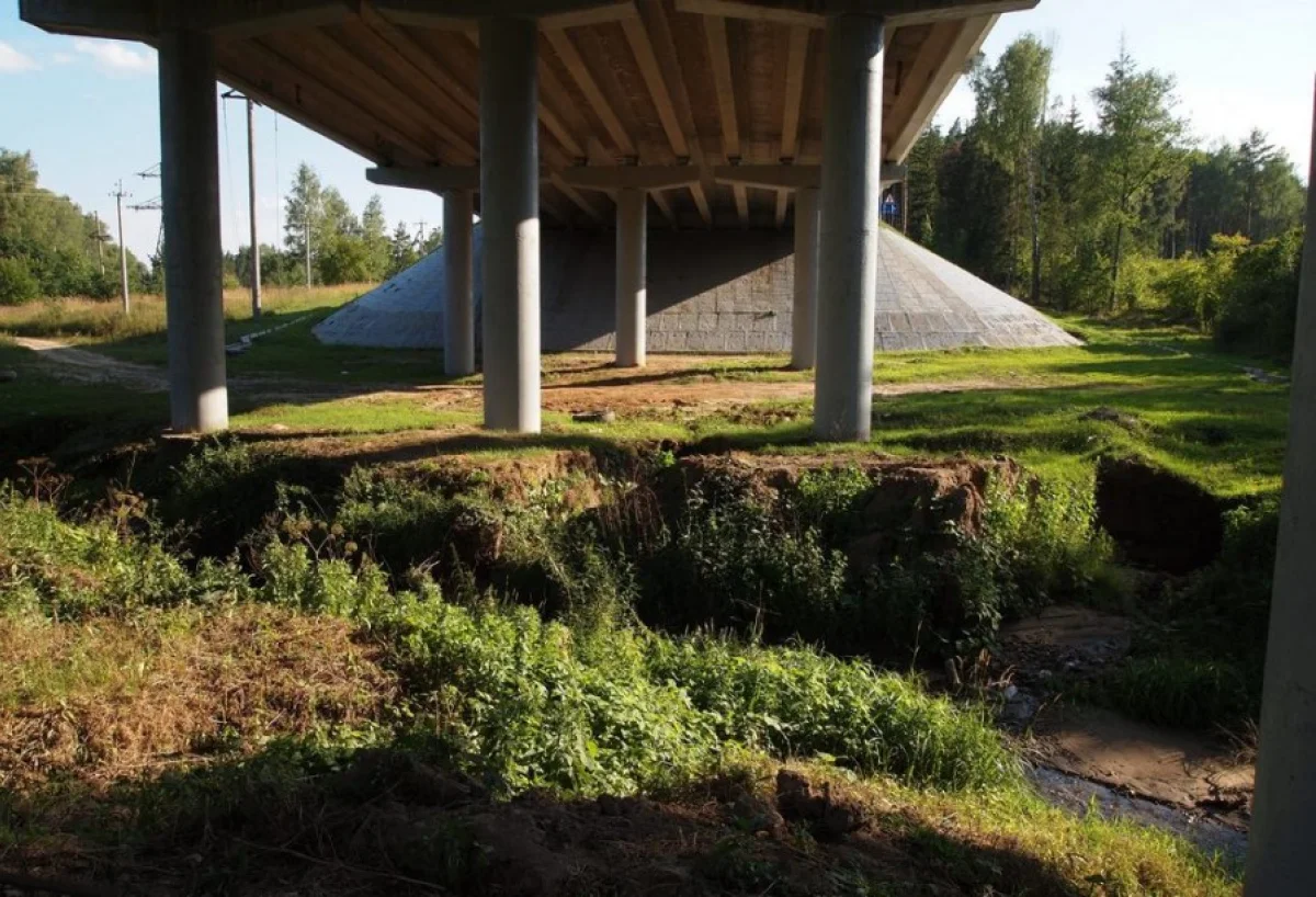 Основание автомобильной эстакады через ручей Вырка на автодороге Калуга-Перемышль тоже немного пошаталось и имеет очевидные вымоины