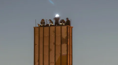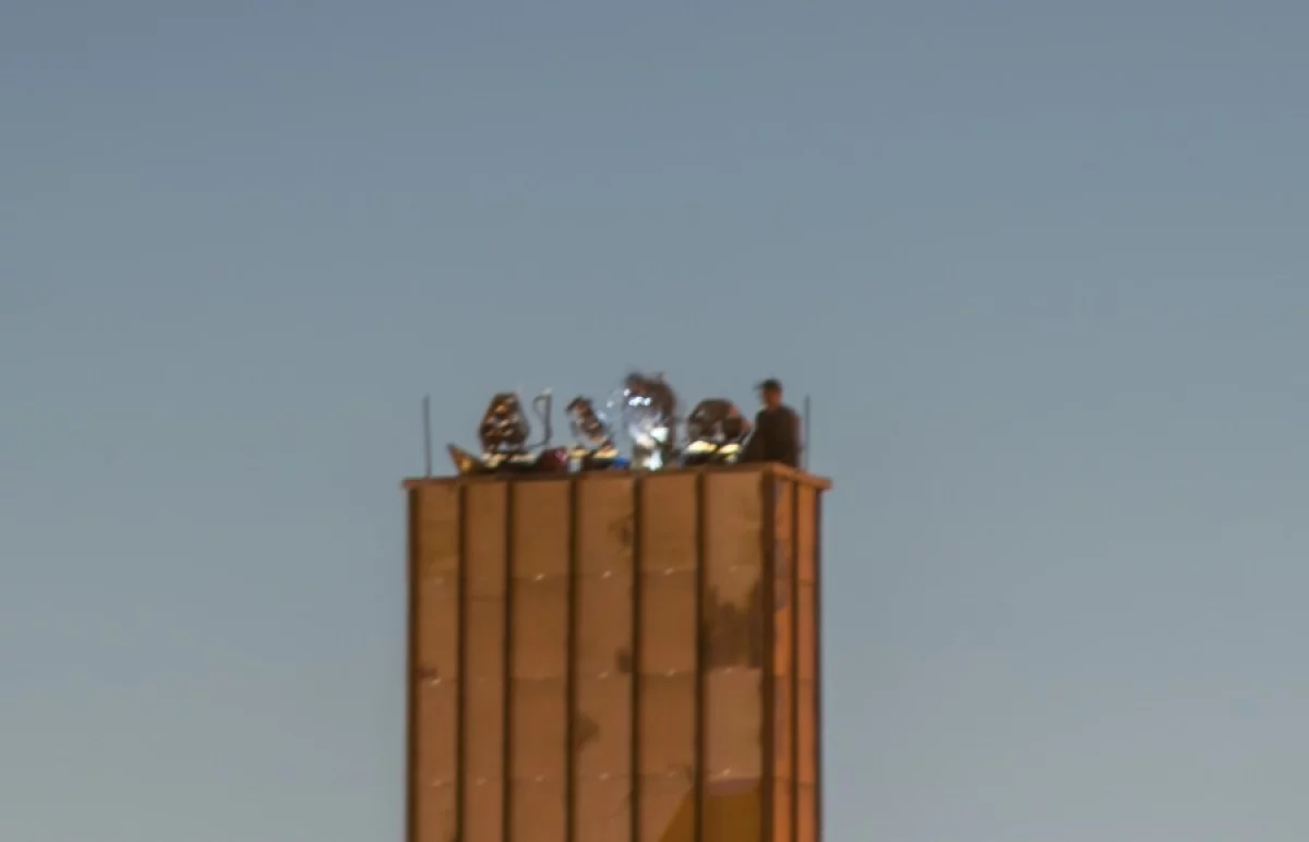 Сегодня около 20:30 заметил на вершине стелы 600-летия Калуги, в простонародье "шарик", движение. Сначала подумал показалось. Взял фотик и немножко обалдел. Если это альпинисты ставят оборудование ко дню города, то почему так поздно, в темноте? А если это типа спортивные парни-экстремалы, покоряющие крыши высоток, то где тогда полиция??? Они же там вроде как всегда дежурят.