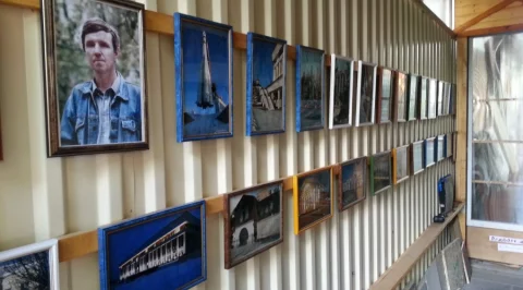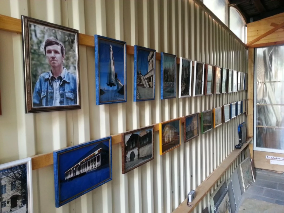 На стенде с фотографиями-видами города присутствует снимки, сделанные их автором, известным краеведом - "Летописцем".