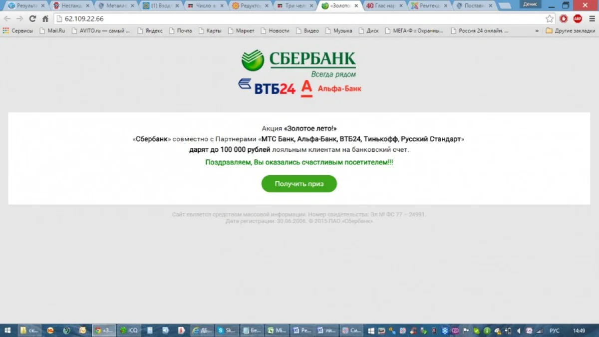 Перехожу на сайт КП40 с Яндекса и о боже - УДАЧА!! мне сбербанк дарит 100 000 рубасов. Только номер карты просят( куда деньгу прислать!!). Подскажите, может я зря волнуюсь и мне стоило его указать!!