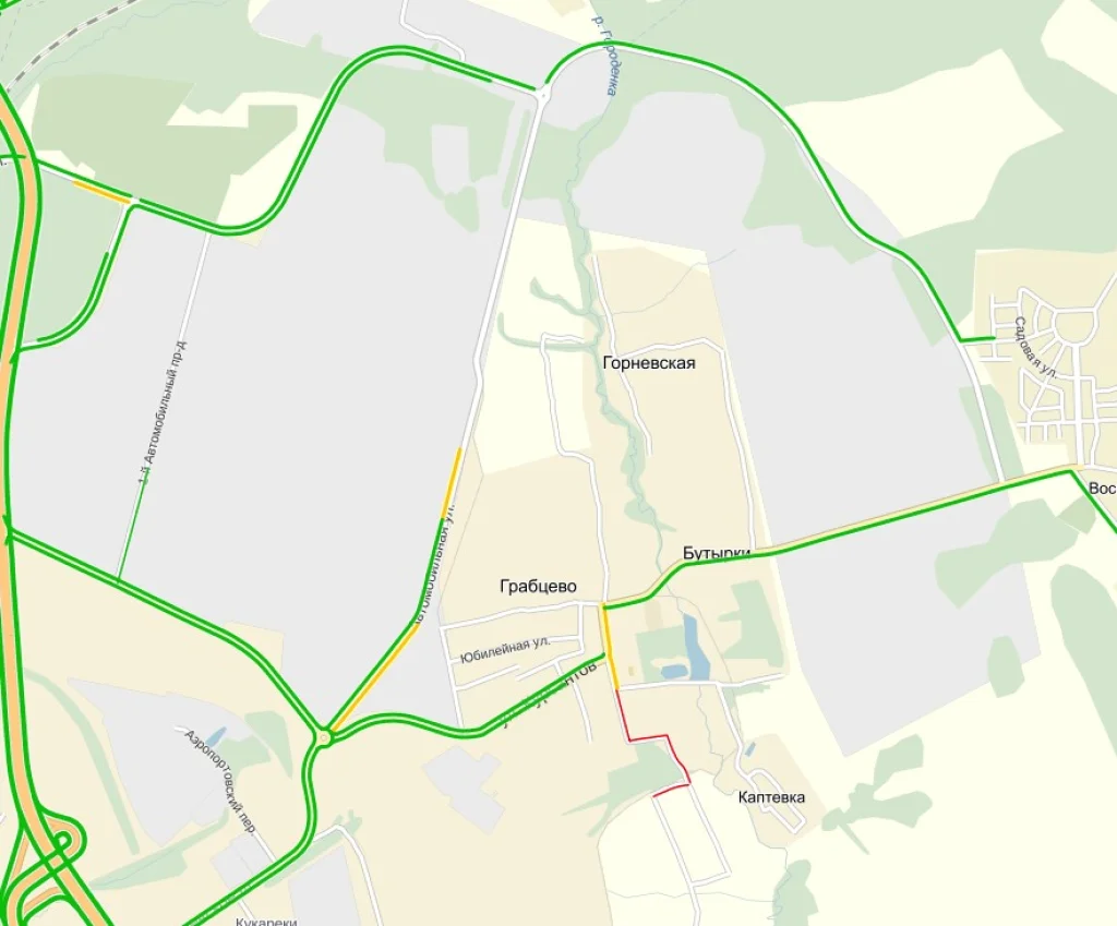 Как показывает сервис Яндекс. Пробки, на улице Автомобильной пробок нет. Потому что движения нет. Вообще :))
