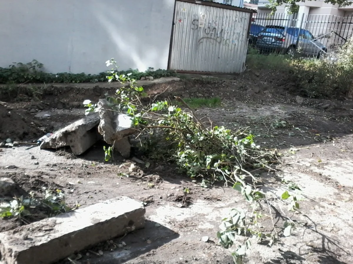 Двор разнесли для последующего благоустройства, причем имеется ряд конкретных претензий: по сломанным деревьям, намеченным бордюрам вдоль трансформаторной будки, что приведет к образованию луж (они и без бордюров там образовывались в опасной близости с источниками электричества, а теперь-то уж точно застой обеспечен).