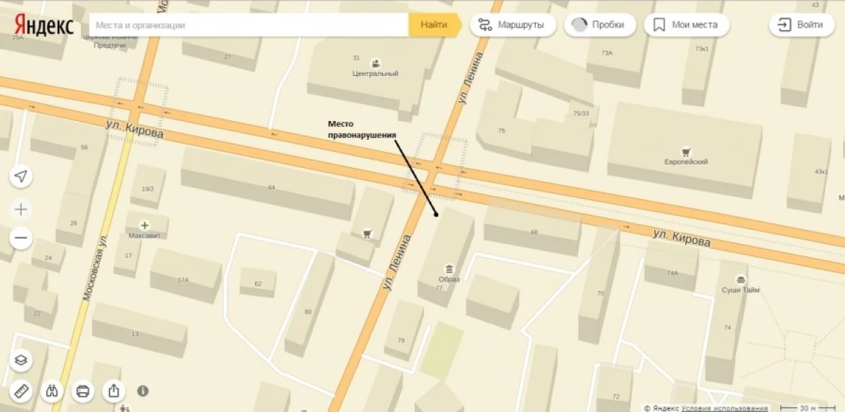 Ниже приложены 2-е фотографии и карта с указанием места нарушения.