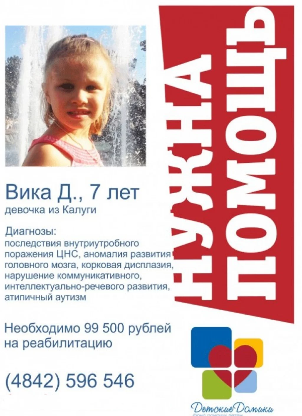 Давайте вместе поможем девочке вовремя пройти курс реабилитации! Оказать помощь Вике можно через Фонд «ДетскиеДомики»