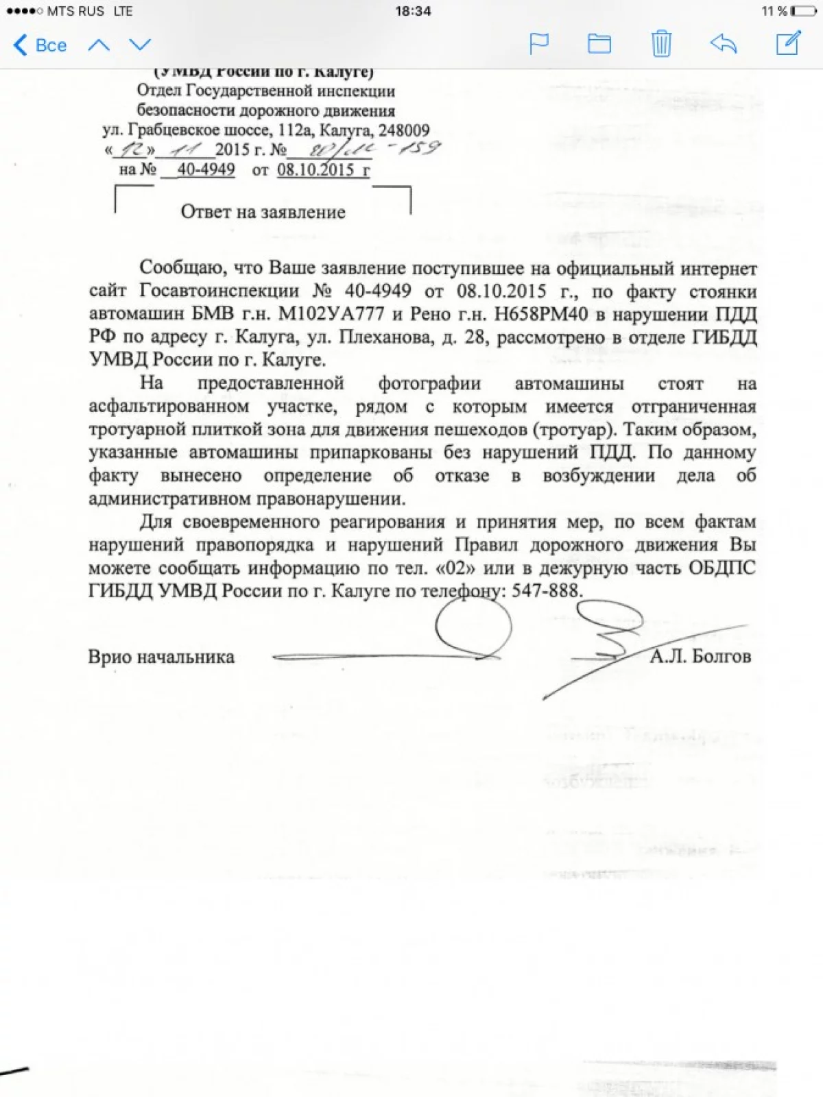 По данным полученным от врио начальника А.Л. Болгова и зам начальника Макерова Р. Г., автомобили запечатлённые на фотографиях ничего не нарушают так как припаркованы не на тротуаре. Хочу предупредить пешеходов идущих по улице Плеханова по не по тротуарной плитке, а по асфальту, Если решите подойти к лавочке и присесть на неё, будьте осторожны, вы выходите с тротуара на асфальт и ваш путь к лавочке может быть опасен, так как вы не идёте по тротуару! Да и собственно получается что лавочка стоит не на тротуаре! Ответы из Гибдд прилагаю.