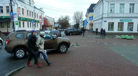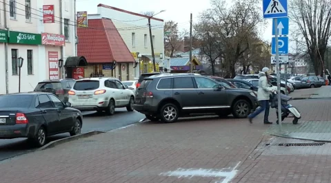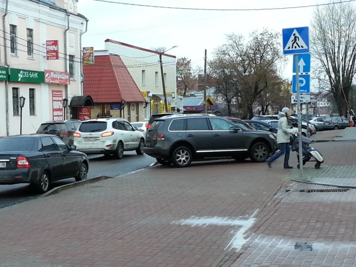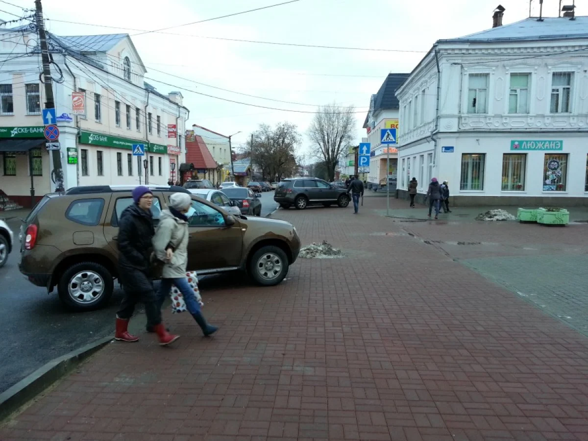 Если помните, с месяц назад я задавал вопрос: зачем, мол, сузили ул.Дзержинского на перекрёстке с Театральной? И что мне в комментах писали? И что - в итоге? Паркуются и вдоль этого аппендикса, и, более того, переезжают бордюрный камень и бесцеремонно заезжают на пешеходную плитку! Спрошу в очередной раз: зачем огород городили, чего добились?