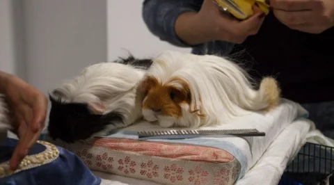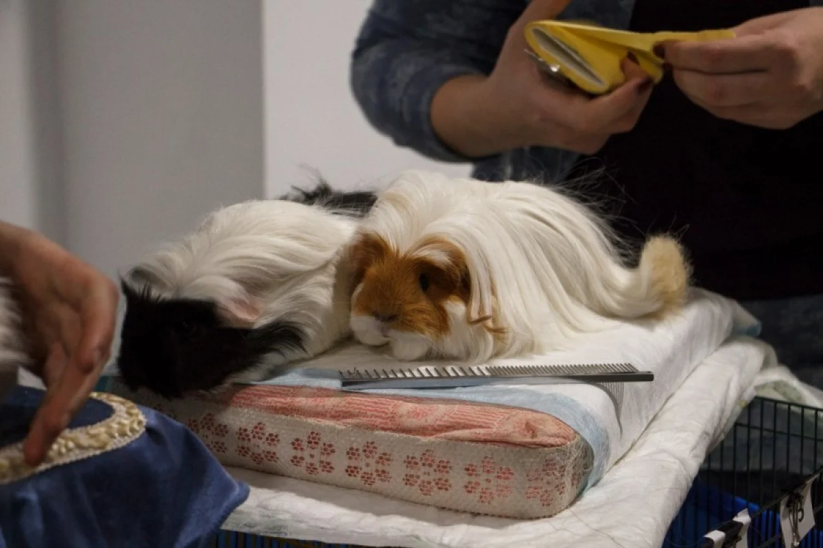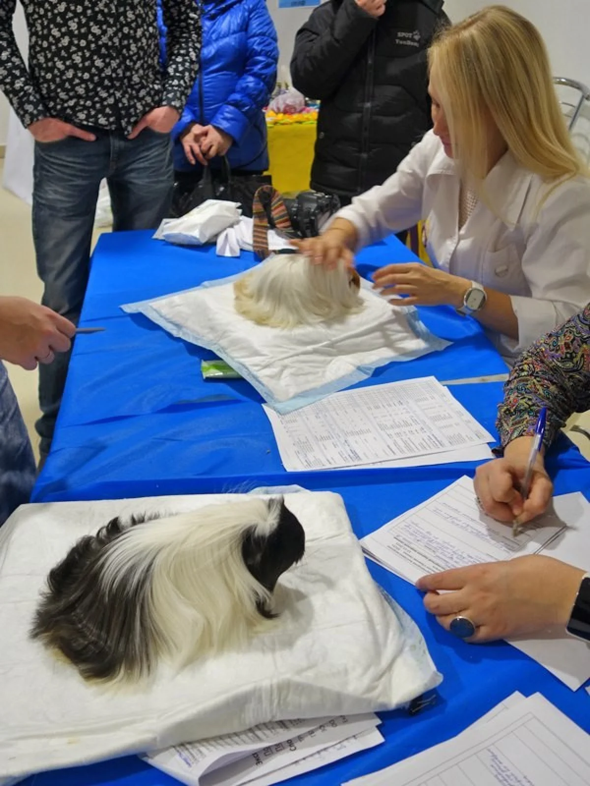 На выставке приняло участие 60 морских свинок 12 разных пород - шелти, мерино, коронеты, тексели, абиссинкие, таны, калифорнийские, английские селфы, американские тедди, скинни, болдуины. Были как короткошерстные свинки, так и длинношерстные и совсем бесшерстные лысые.