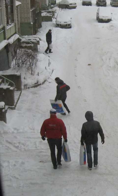 Сегодня по нашему дому ходили молодые люди и настойчиво пытались проникнуть в квартиры. Парней трое, с большими пакетами с надписью "Детский мир". Представлялись, будто-бы от торгового центра "РИО" и хотят вручить какое-то приглашение. Сначала попросили таблетку от головы, я попросила подождать, закрыла дверь, а затем вынесла таблетку и стакан воды. Потом они хотели вручить мне в подарок какие-то духи, и набор для вина, я отказалась. После этого попросили конфетку, варенья или чего-нибудь сладкого, я ответила что на диете и ничего такого у меня нет и попрощалась. Молодые люди очень веселые, общительные, располагающие к себе. Так они обошли всех соседей и тоже просили у них таблетки или что-нибудь еще. Предупредите своих родственников и знакомых, пусть будут осторожнее, в бесплатную халяву совсем не верится. На всякий случай сделала фото, но к сожалению, только со спины.