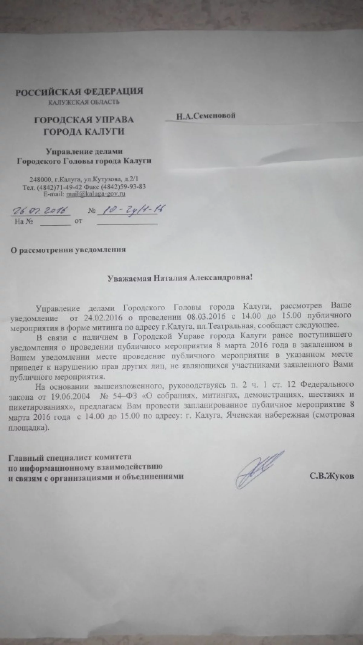 Калужские чиновники сделали "подарок" молодым мамам, отказав в проведение митинга 8 марта на Театральной площади против отмены детских пособий и бесплатной "молочки". Сослались власти на то, что место уже кем-то занято.