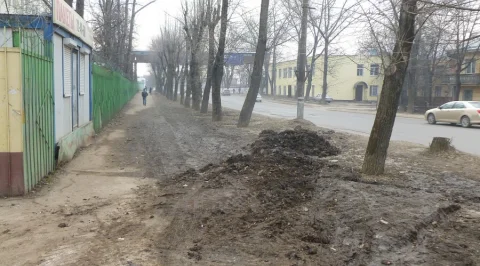 Еду сегодня утром на своём лисапете по улице имени Карла Либкнехта и вижу такую картину. Трактор грузит грязь с автопарковки у важного городского предприятия и «аккуратно сваливает» на печально знаменитый газон у тротуара (и частично на тротуар). Я остановился и начал фоткать данное действо. Тракторист стал грозить мне кулаком. Я тоже погрозил ему кулаком и крикнул – Ты что делаешь? Тут, как дождь, так полное «ЖО» на тротуаре наступает. А ты ещё грязи подваливаешь. Тракторист сразу юркнул на территорию предприятия на своём тракторе. А новый довесок грязи с очищенной им парковки (для своих) остался в подарок несчастным калужанам.
