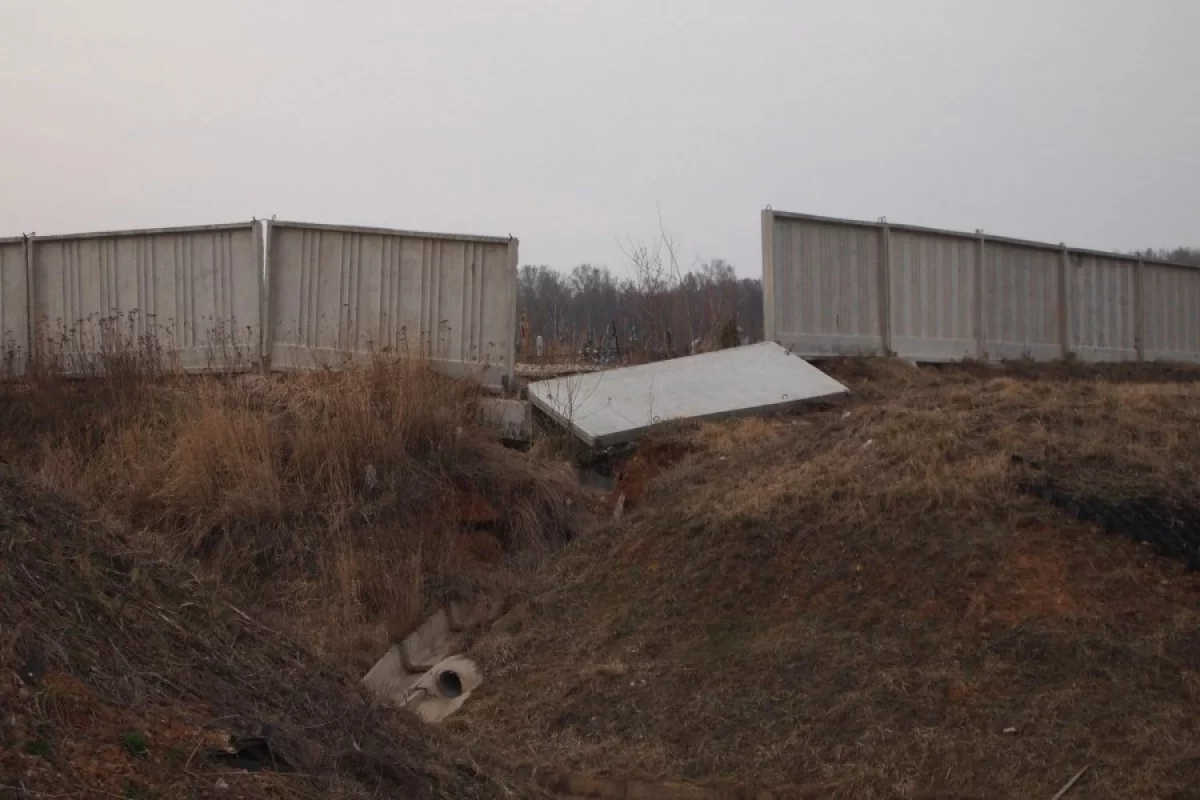 Часть забора Литвиновского Кладбища г.Калуги находится в упавшем состоянии.