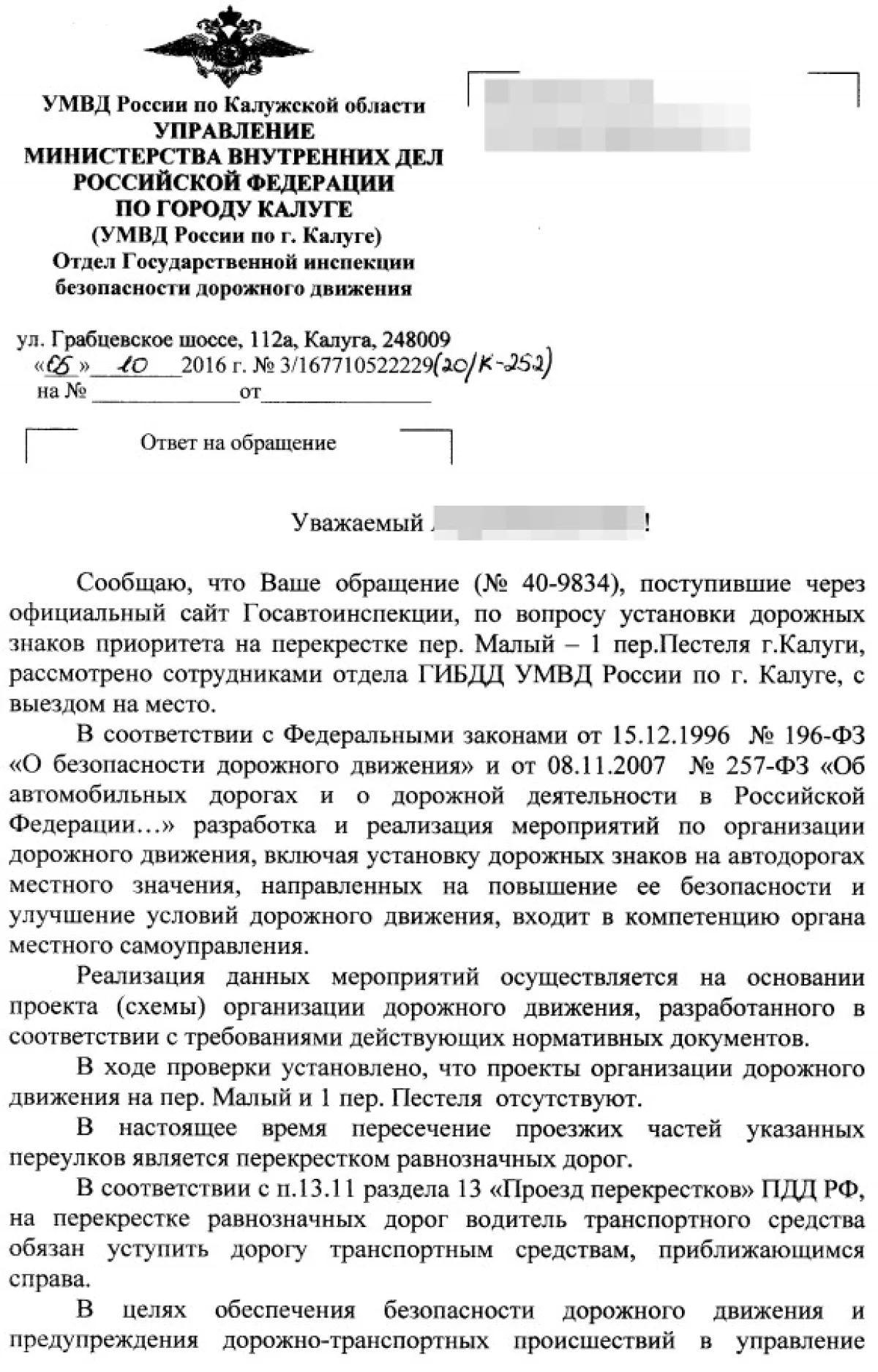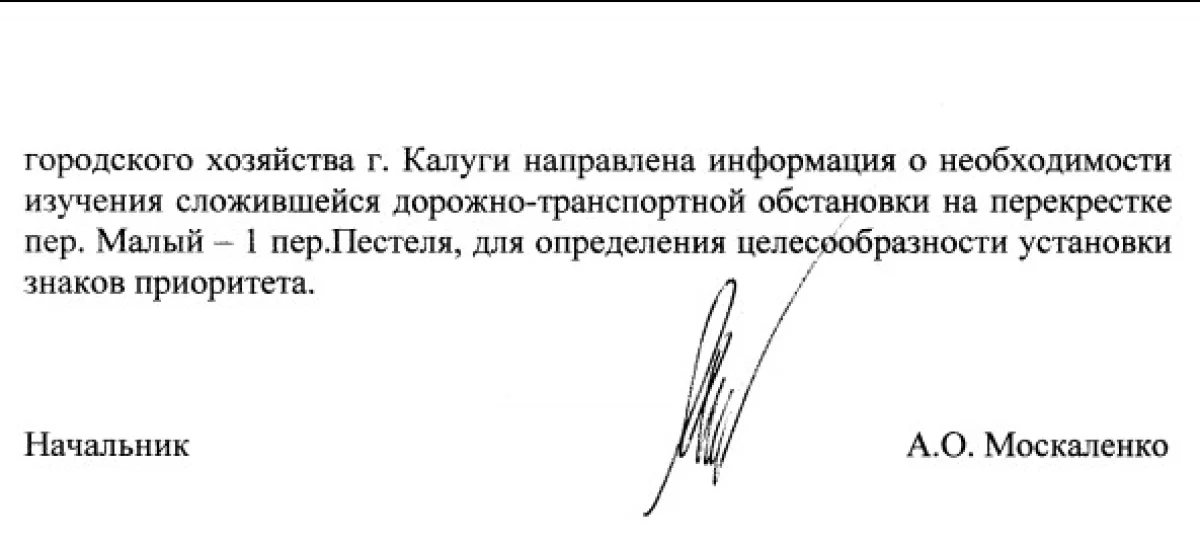 Ответ ГИБДД прикладываю и, пользуясь случаем, выражаю им благодарность за то, что не отделалсь простой отпиской, а вникли в ситуацию. А также вернули переулку Малый гордое имя Дорога.
