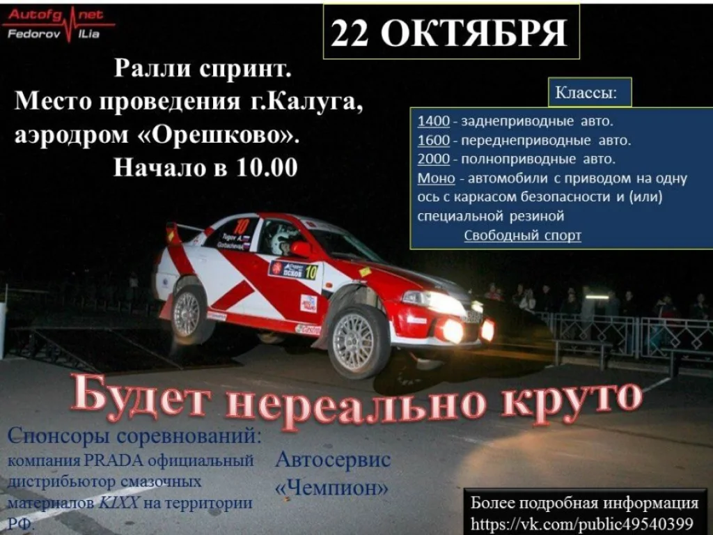 Приглашаем всех жителей города и области в качестве зрителей и участников, на замечательные соревнования профессионалов и любителей автоспорта. 22.10.16, начало в 10:00 утра, аэродром Орешково за пос. Воротынск (Опытная станция).