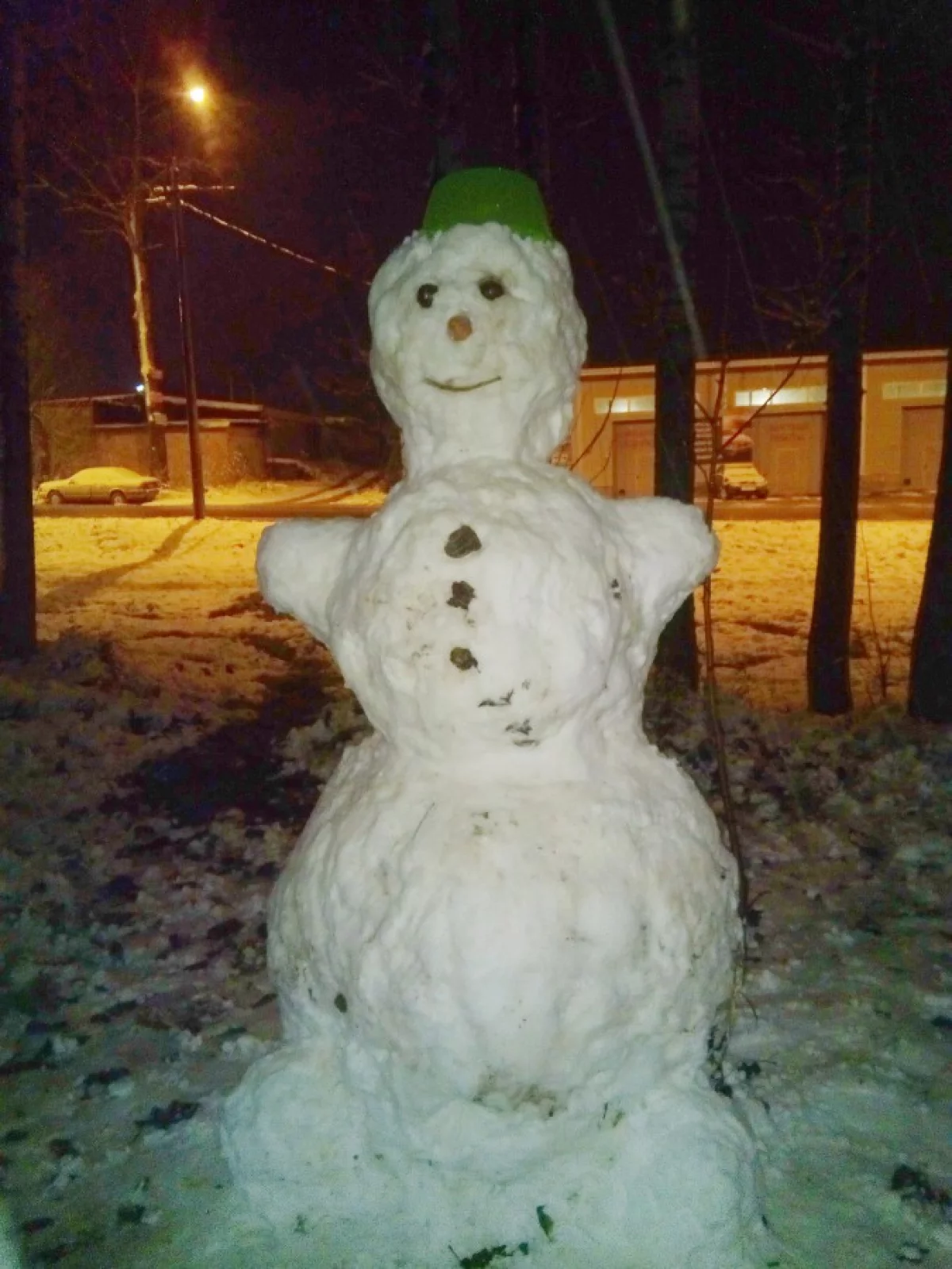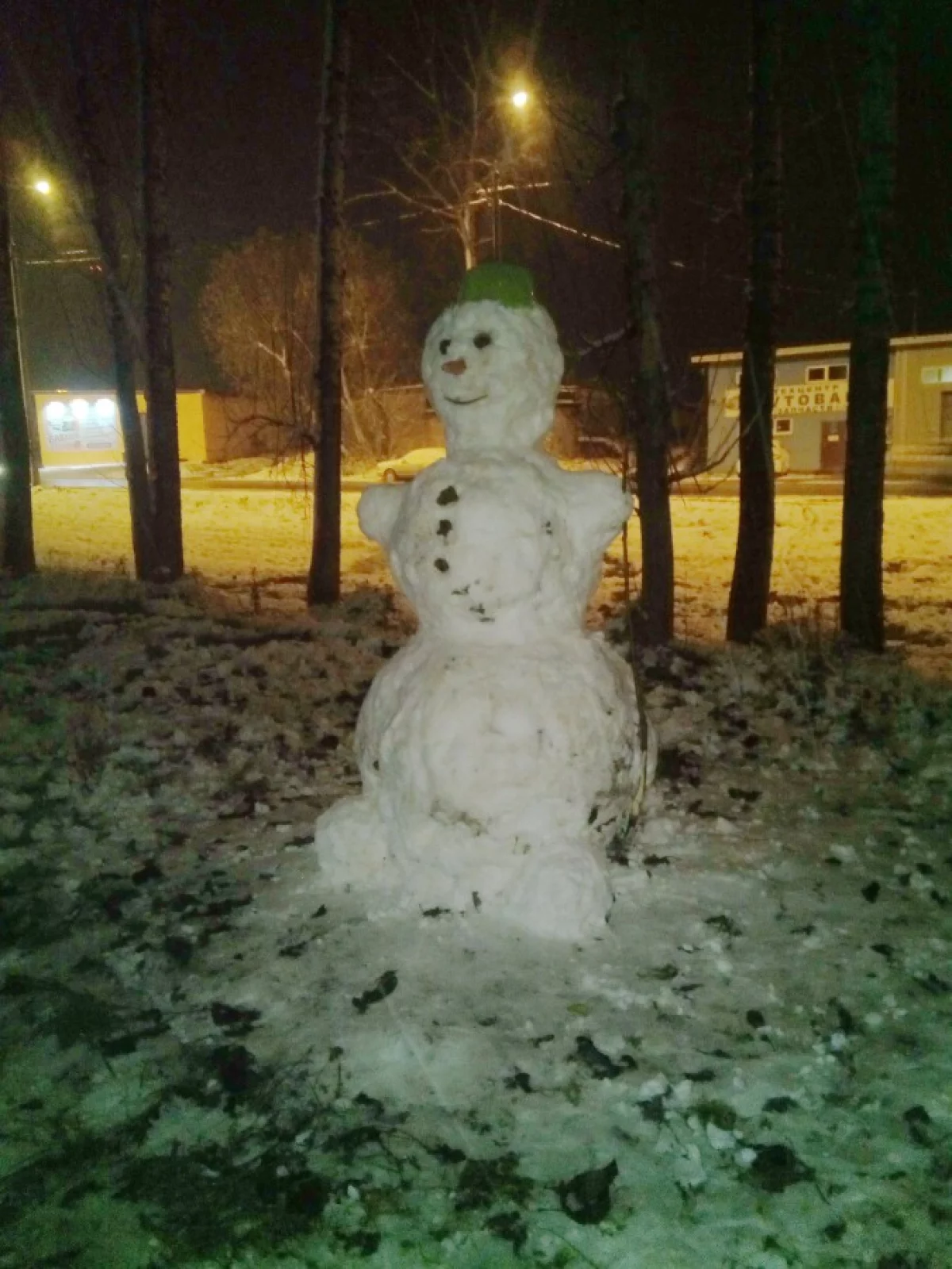 29 октября практически весь день шел снег. Дети, приехав с института, решили пойти во двор слепить "снеговика". Купили ему таз на голову и морковку вместо носа. Ночь снеговик простоял а утром два дебила его разломали. Я еле-еле дочь успокоил... Всё-равно, говорю,потеплеет и растает, но осадок остался. Вот такое воспитание у детей. Одни стараются что-то сделать, чем то удивить, другим все по одному месту.... :(