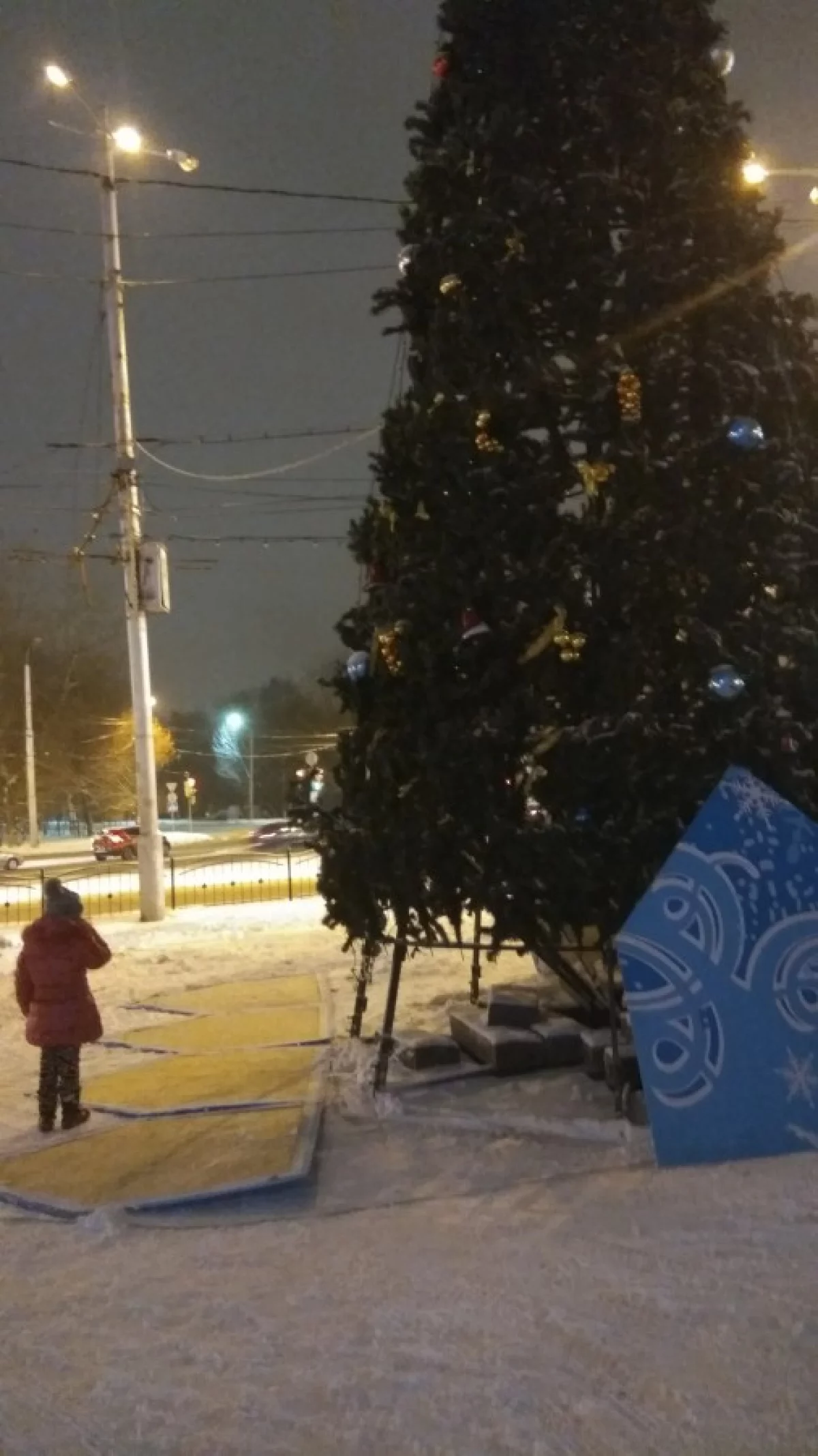Тут уже писали про нее, а на выходных получилось лично убедиться, что с этой ёлкой что-то не то. Рабочие не потрудились нормально собрать ее, в итоге мы видим на фото, что получилось