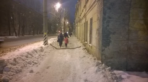 сосульки сегодня убрали (наконец то),сбить то сбили ,но оставили лежать там же.Тротуар, шириной полтора метра летом ,зимой превращается в тропинку шириной сантиметров 70.