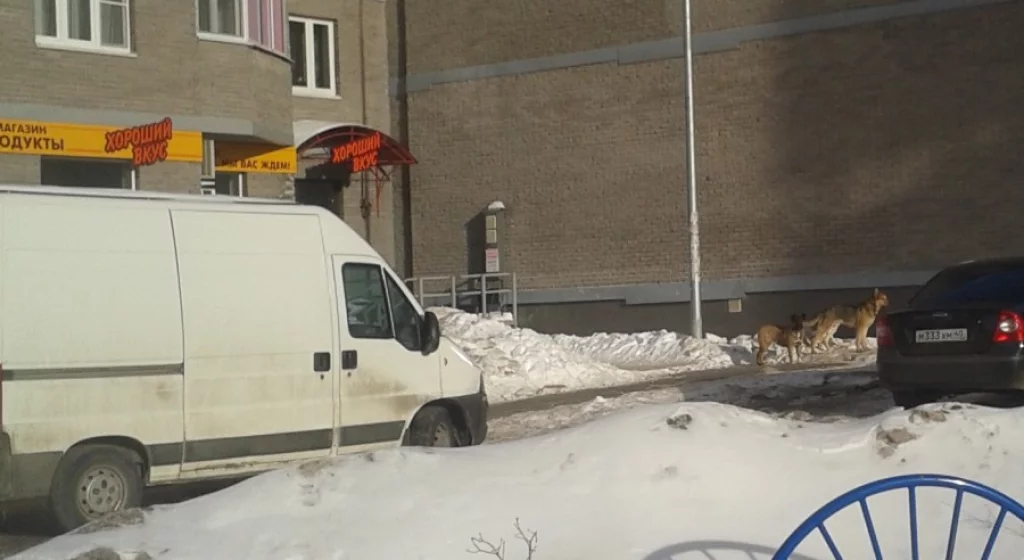 Хотел бы отметить что одна из этих собак постоянно сидит ВНУТРИ магазина с продуктами,в котором по мимо этого ещё и ходит по продуктам какой то сомнительный кот, так и живём.( магазин Хороший вкус)
