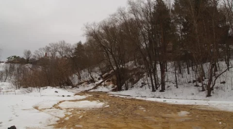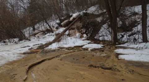 Когда я бегал на лыжах, то заметил одно такое. Это протечка нечистот из трубы большого диаметра