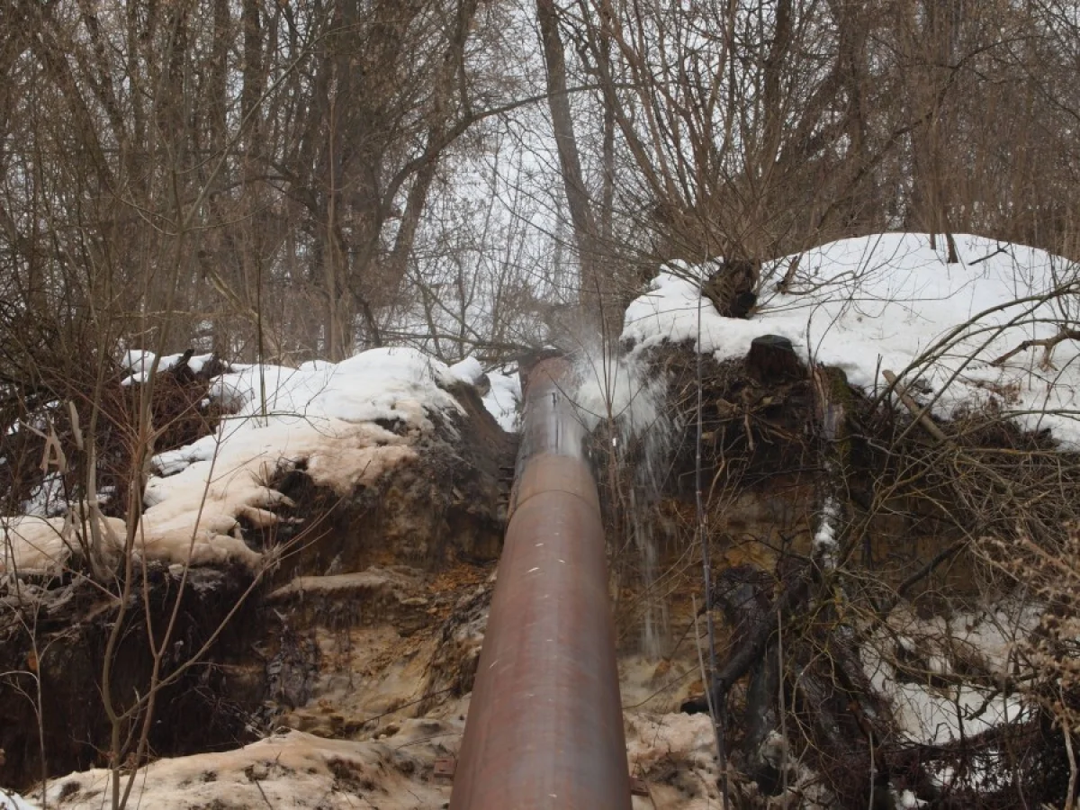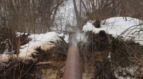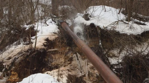 Интенсивная протечка нечистот из трубы большого диаметра в районе набережной Яченского Водохранилища в Калуге!
