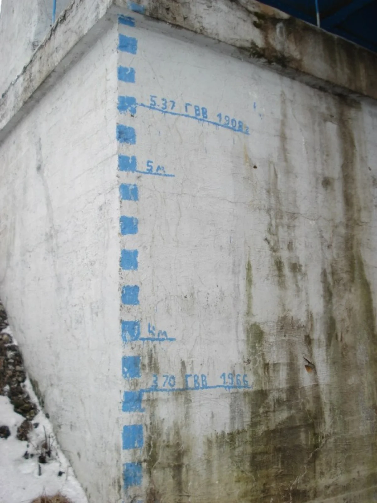 На фото железнодорожный мост "Чугунка" через реку Суходрев. Да же был специально обученный человек, который следил и отмечал уровень воды, а так же куда то передавал данные.