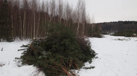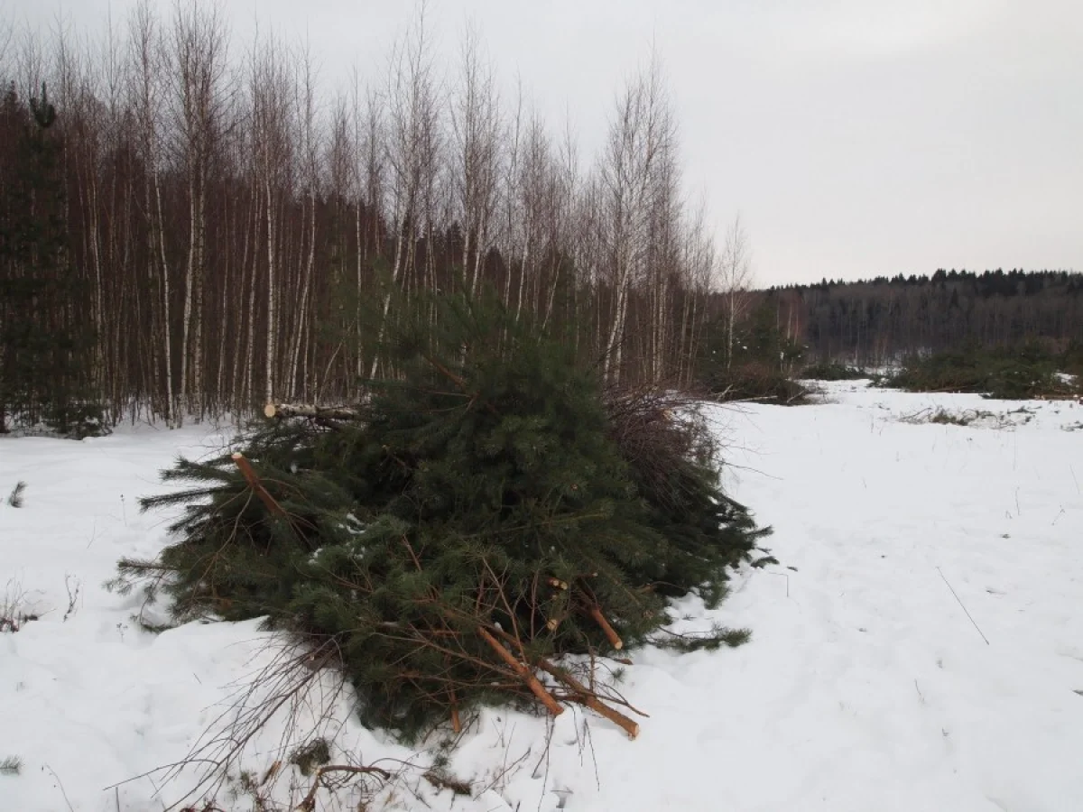 Вырубка молодых деревьев в районе пруда Вырка (пригород Калуги)