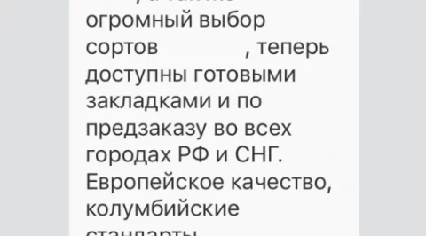 Вчера на один из распространённых мессенджеров мне пришло сообщение от некой организации, которая предлагает довольно-таки широкий выбор специфической продукции, при этом самого лучшего качества. Текст можете посмотреть на фотографиях, название организации лишилось пары букв, чтобы было сложнее её пробить, а товар закрашен, по запятым можете оценить ассортимент.