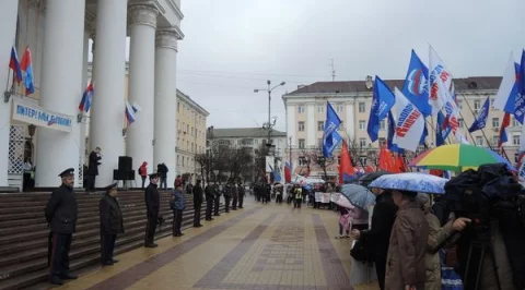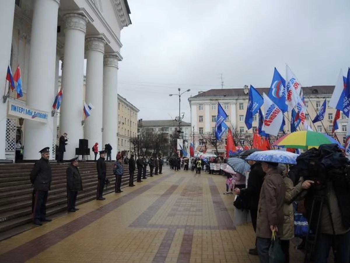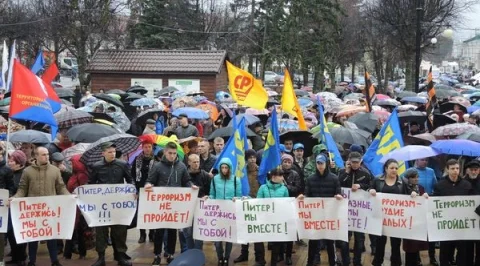 В Калуге идёт митинг против террора "Питер, мы с тобой!". Сотни калужан вышли на площадь перед Калужским областным Драматическим театром. Много молодёжи, представители разных партий и общественных организаций, дети. Всех объединяет желание и стремление покончить с угрозой терроризма в нашей стране, горечь, скорбь, тревога и переживание за погибших и раненых в метро Санкт--Петербурга. Зреют, зреют гроздья народного гнева против мракобесов международного терроризма, будь-то религиозные фанатики или те, кто называет себя цивилизованными "господами всего мира". Питер! Россия! Мы с тобой! Александр Сергеевич Суворов. Калуга. 08 апреля 2017 года. 11:31.