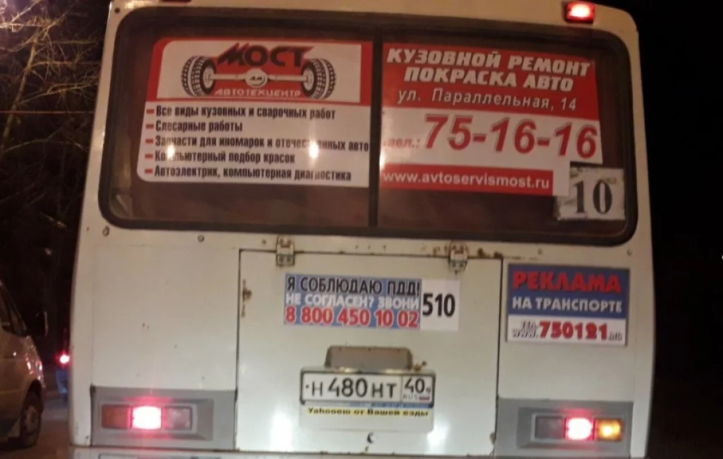 Когда я первый раз увидел такую наклейку на маршрутке, которая резво повернула с левого ряда пл. Победы на ул. Кирова (чуть не совершив ДТП), я решил позвонить, но в ответ услышал только короткие гудки, я подумал что ошибся с набором номера который запомнил на память. Вчера я увидел автобус ПАЗ (на фото), на котором была такая же наклейка, и решил запечатлеть номер на фото, мало ли пригодится, а дальше этот автобус поворачивает с правого ряда ул. Зерновая, налево ул. Гр. Шоссе, как знал что у меня номер теперь точный. Позвонил, долго слушал предложение дождаться ответа оператора, не дождался.