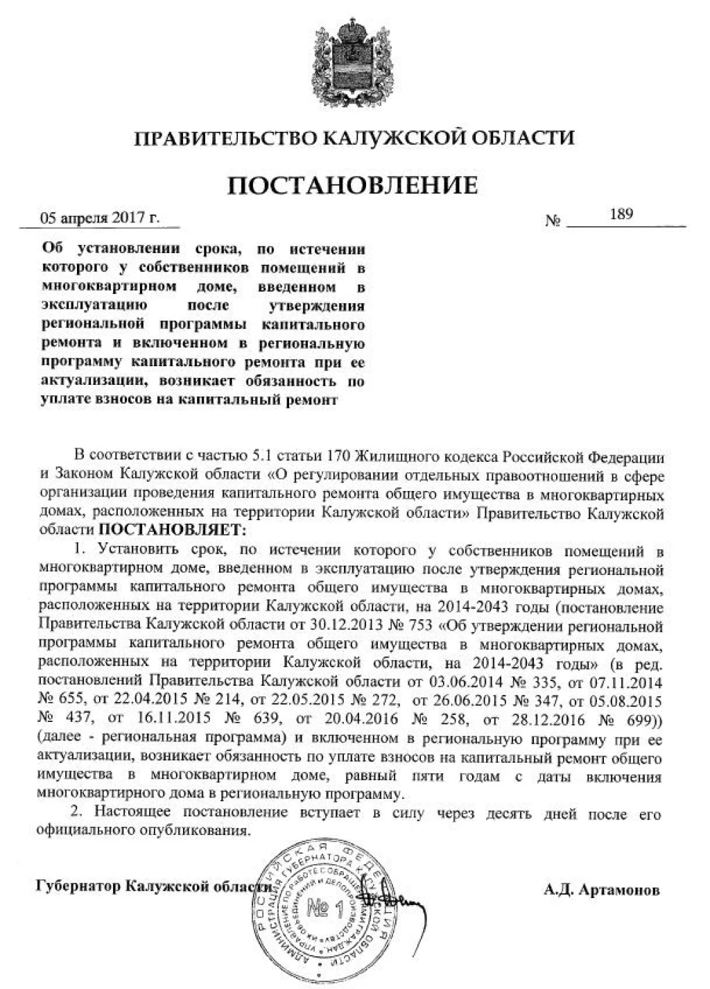 15.04.2017 вступило в действие Постановление Правительства КО о сроках наступления обязанности уплаты в ФКР в новостройкай. Добрые люди прислали данный документ.