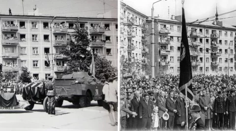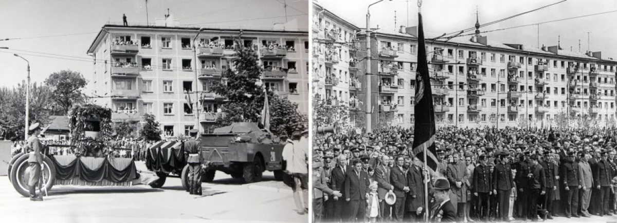 4. 9 мая 1975 года. На Площадь Победы с Ильинских рубежей доставили останки неизвестных солдат. Фото из архива Вячеслава Николаевича Петровского.