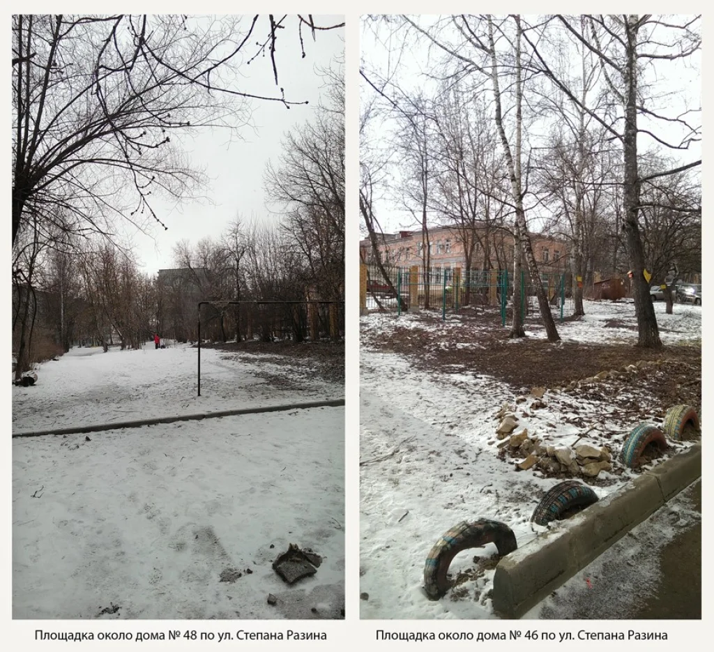 Два депутата от партии Единая Россия, Лаврецов и Середин, не хотят решать вопросы благоустройства домов по ул. Степана Разина 46,48. У нас общий двор, но депутаты отказываются помочь жителям и обустроить детскую площадку. Господин Иванов! Может быть вы нам поможете? Уже не знаем куда обращаться. Дети играют на проезжей части. Фото зимнее, летом вместо снега трава и грязь.
