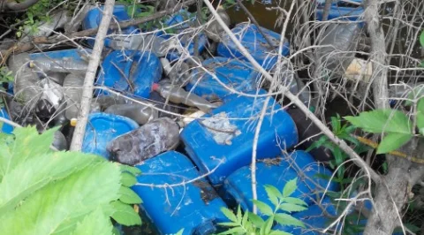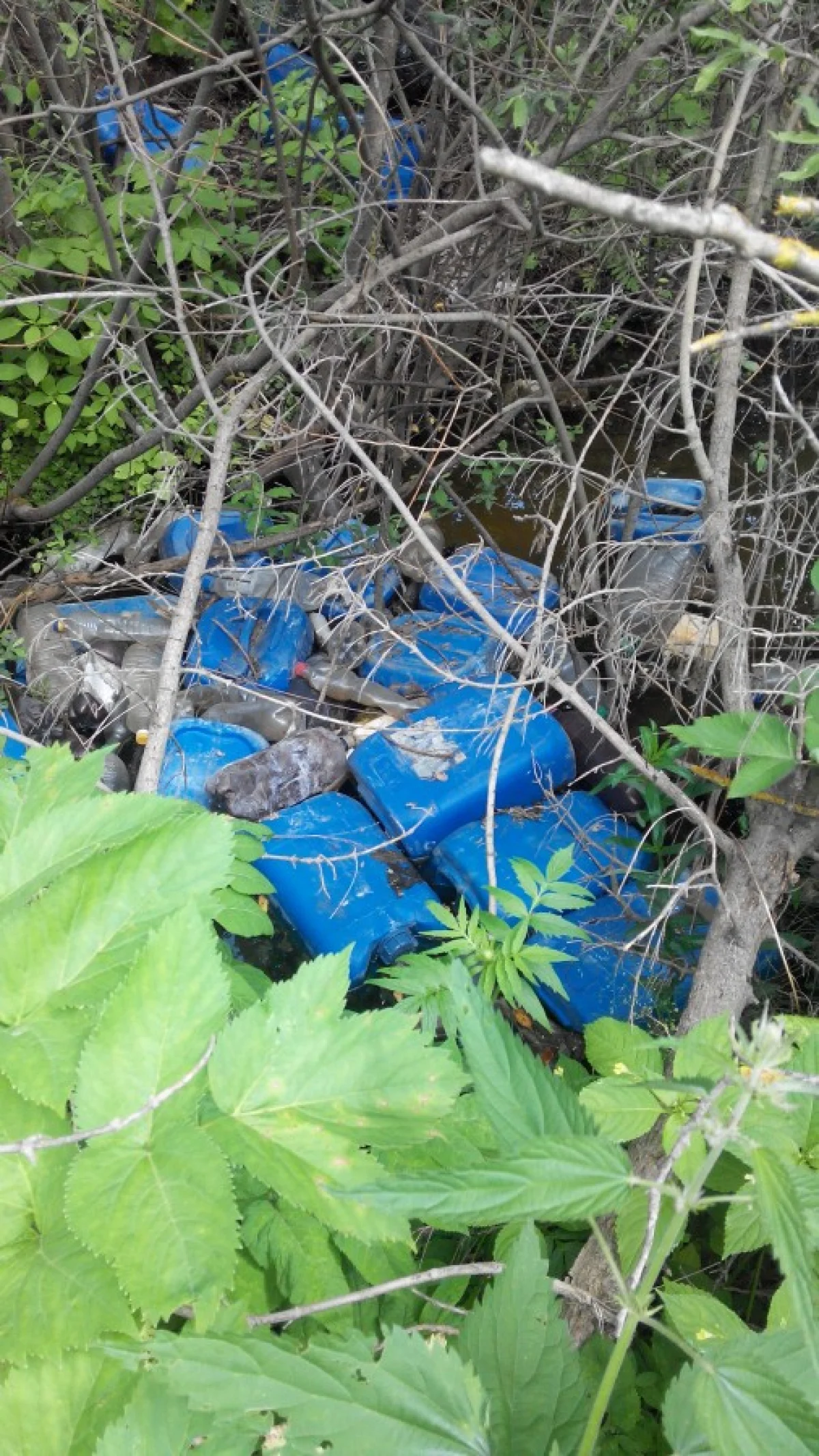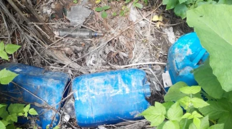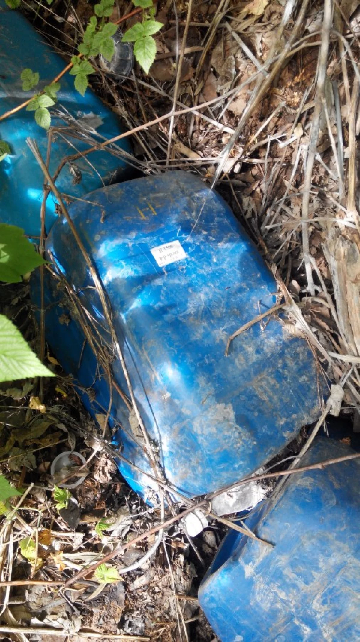 Так утилизировать химические вещества оказывается проще. Вывез подальше от своего дома и производства и сбросил.А дальше хоть трава не расти. Вот такую не большую свалку химических реагентов жидкость темно коричневого цвета в районе д. Ольговка по ул. Литвиновская устроили люди которым все равно что будет дальше. А рядом находятся жилые дома. Водоем в котором свалены канистры втекает в ливневые стоки которые протекают через весь частный сектор где выкопаны колодцы из которых жители берут воду.