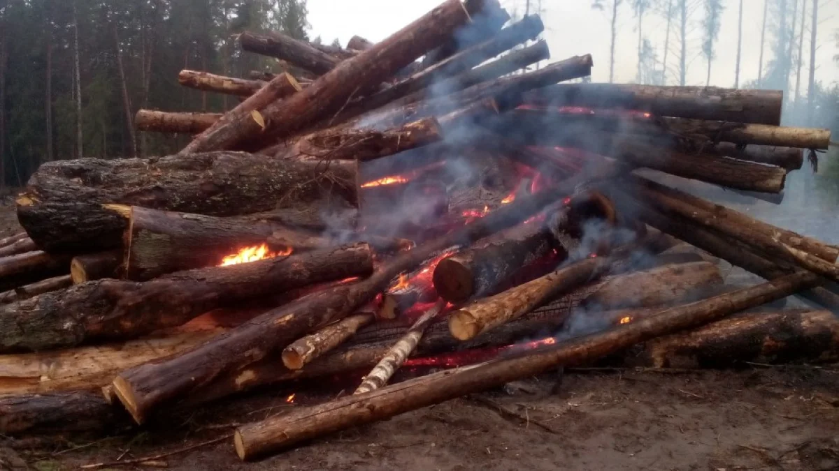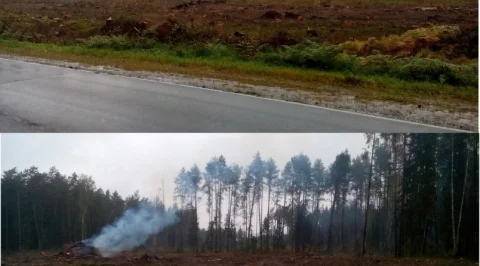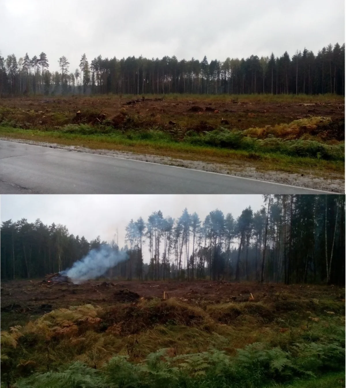 а сегодня .... просто вишенка на торте ! большой кусок леса вырублен под корень при въезде в город Людиново ( если ехать со стороны Кирова). что смогли вывезли, а остатки просто подожгли ... Видать начинается сезон дождей и боятся что машины застрянут. Бревна горящие явно подходят под категорию "делового леса" и не похоже ,что это поломанный сухостой .