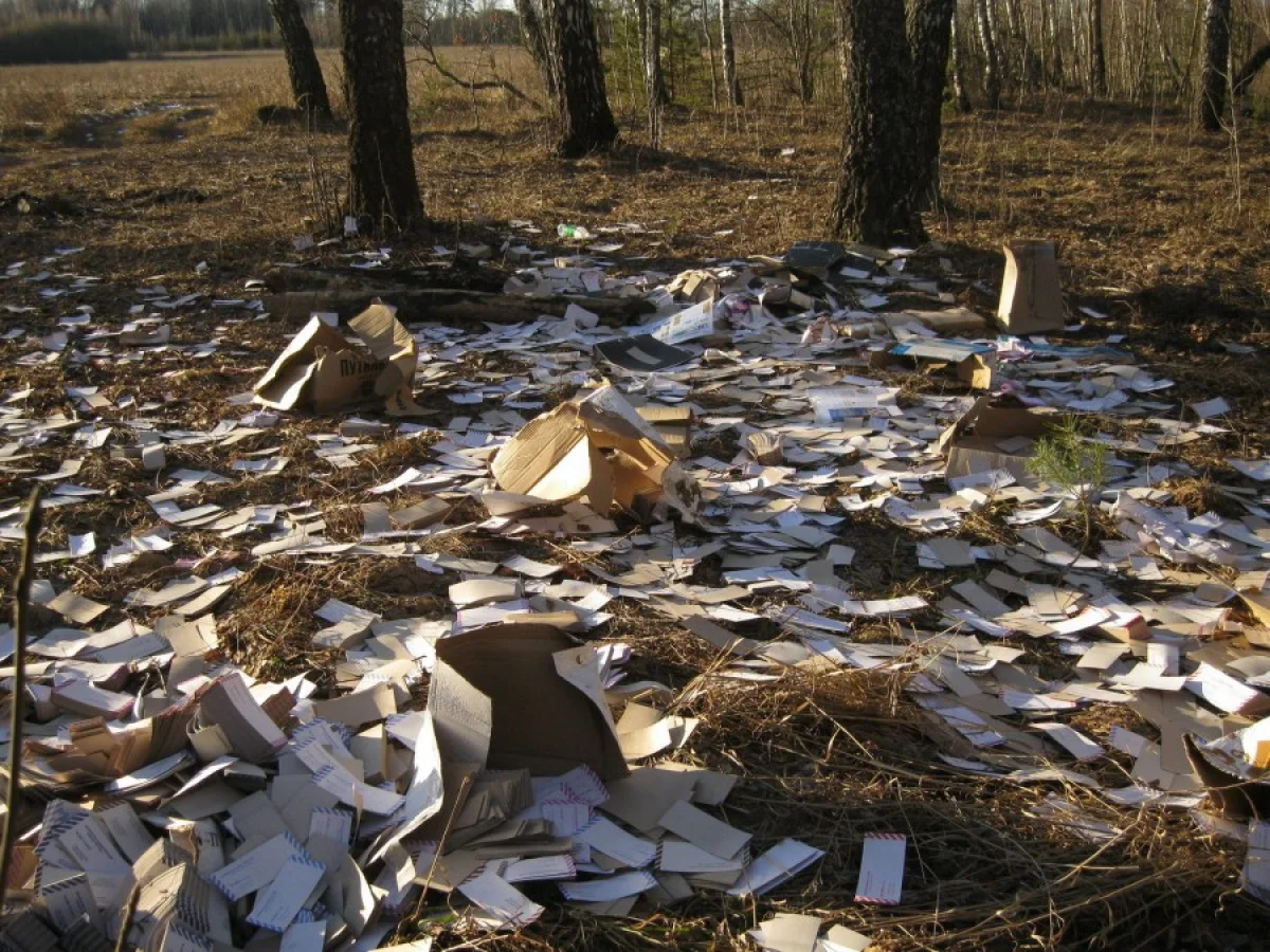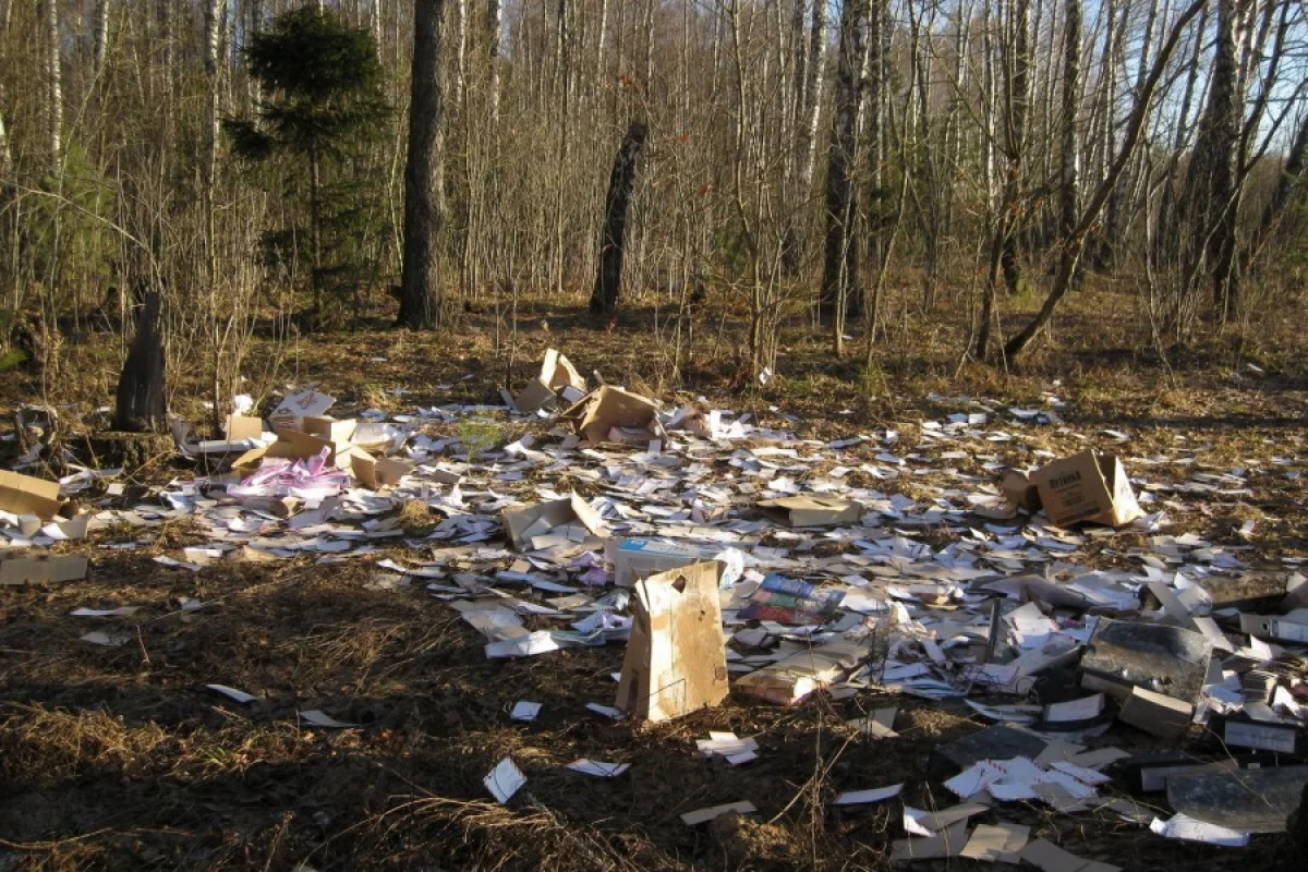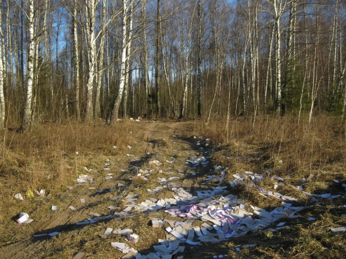 Непонятная "банковская" свалка рядом с небольшим нелегальным захоронением в лесополосе в районе дороги к д.Верхняя Вырка