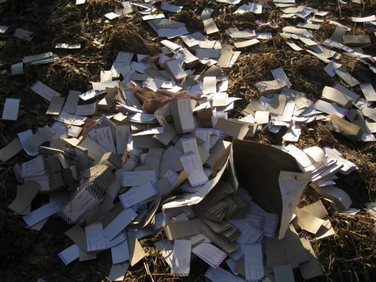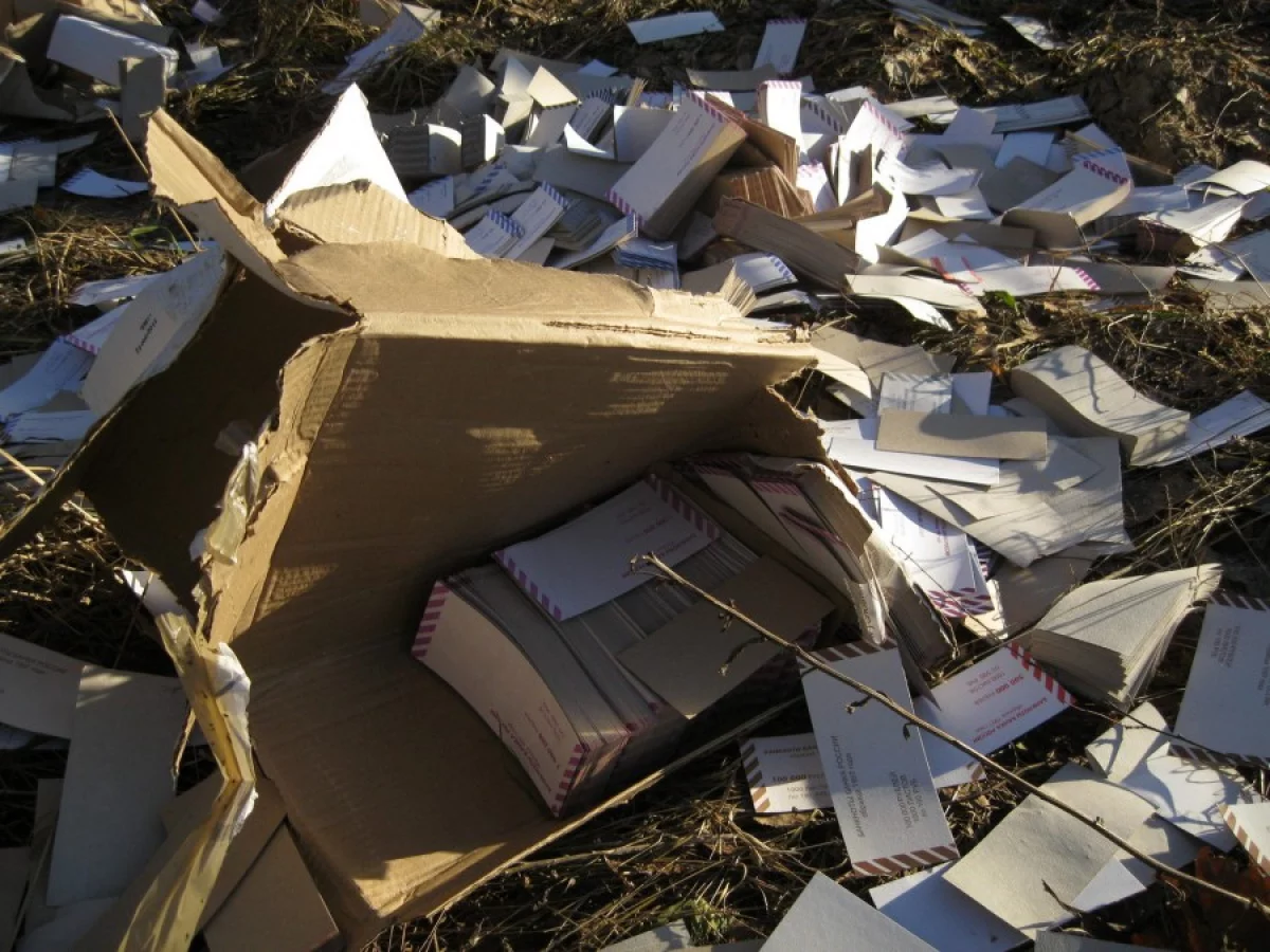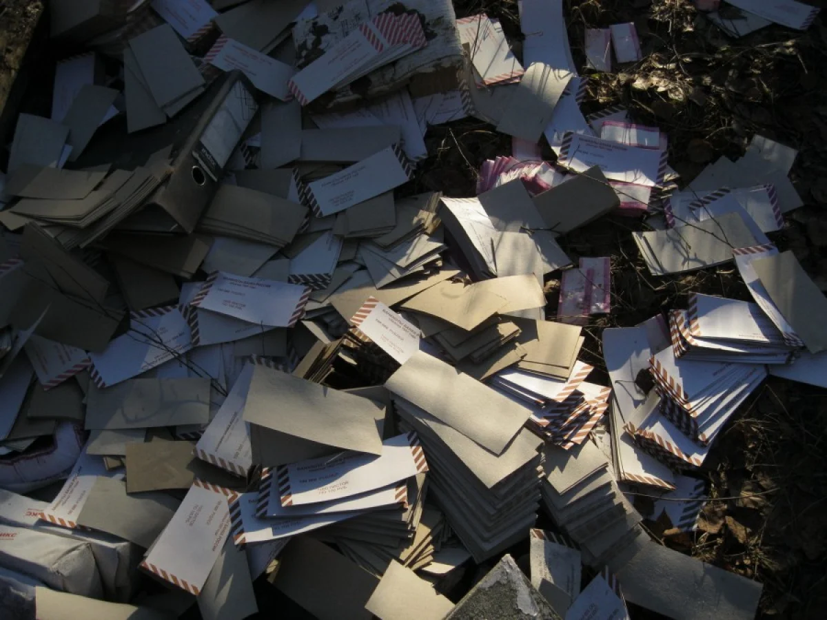 Непонятная "банковская" свалка рядом с небольшим нелегальным захоронением в лесополосе в районе дороги к д.Верхняя Вырка