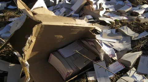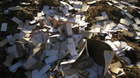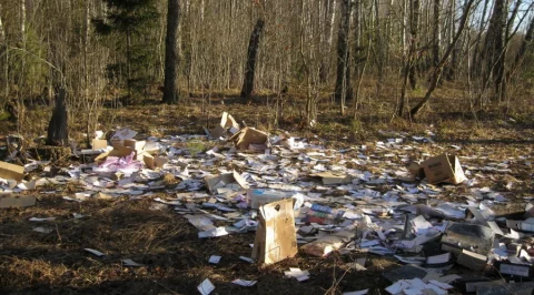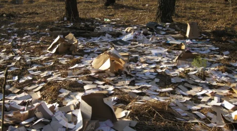 Свалка представляет собой большие кучи и коробки неких банковских упаковок или что-то типа того.