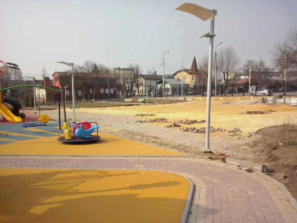Благоустроенная детская площадка ..."легко превращается"... в элегантную площадку строительную.
