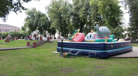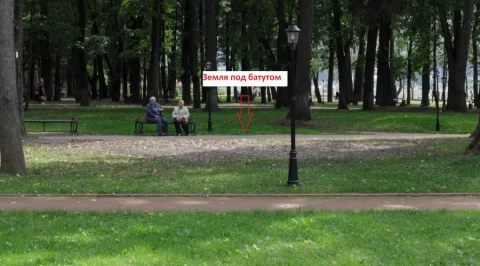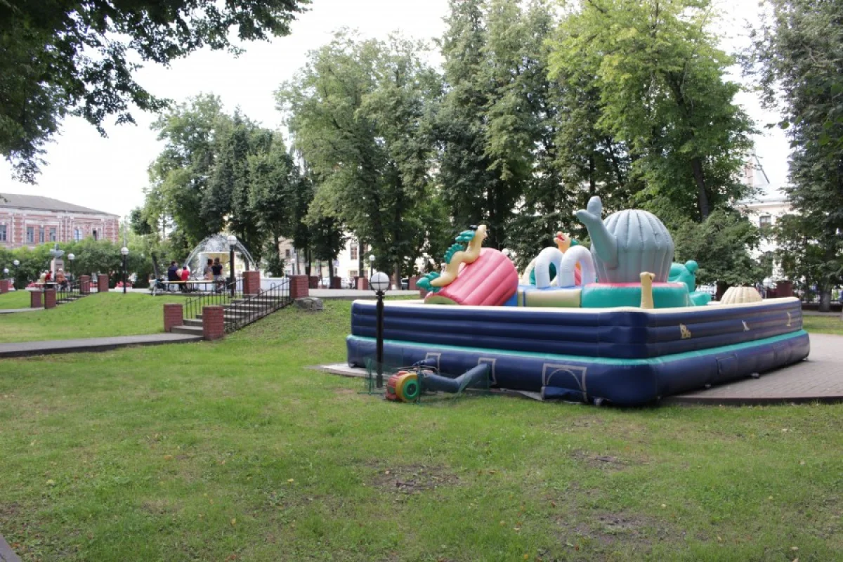 В прошлом году стал свидетелем гениального расположения батута, он стоял на газоне, при этом в самом парке есть таблички запрещающие ходьбу по газону. Ближе к осени батут убрали, на его месте остался большой кусок погибшей травы, батут стоял на ней постоянно, на ночь его не убирали (см. фото).