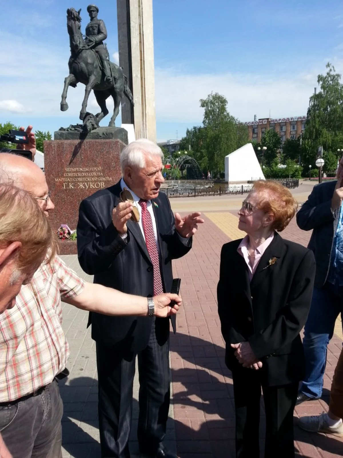 Кстати, местом для памятника на пл.Победы она осталась довольна, а на вопрос о сходстве с её отцом ответила, что передана именно суть кавалериста, каковым и был Г.К.Жуков.