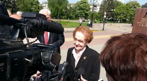 Эра Георгиевна держится бодро, говорит чётко и ясно... Несмотря на свой возраст... О чём она сказала журналистам - в этом году у неё Юбилей.