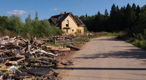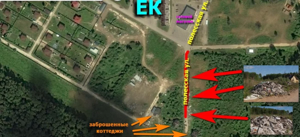 В этот раз в виде просторной свалки, расположенной в конце улицы Полесской, прямо рядом с заброшенными коттеджами.