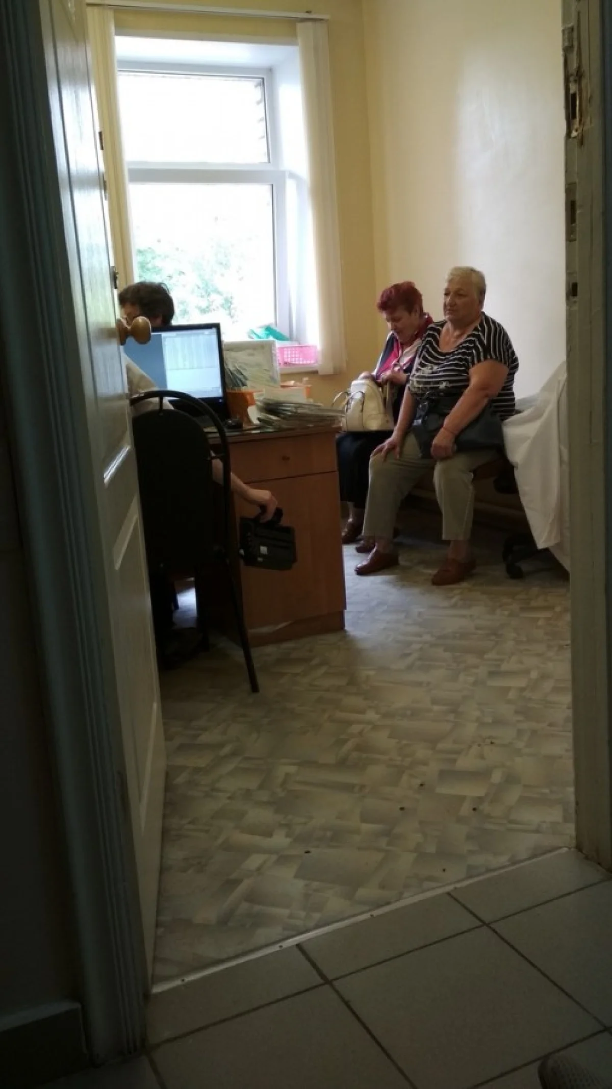 Добрый день. 20.07.2018 я пришла на прием к терапевту в отделение ВОП №2 (ул.Кибальчича, д.20). В поликлинике столкнулась с ситуацией, которая повергла меня в крайнее недоумение и вызвало массу негатива. Участковый врач находится на больничном. Ни одного врача в поликлинике нет. В кабинете №3 вместо него ведут прием пациентов одновременно фельдшер и медсестра. Т.е. в кабинете находится одновременно 4 человека. Периодически в кабинет заходит уборщица и еще кто-то из пациентов. Дверь в коридор открыта. Находясь на больничном листке, я не получила консультации специалиста. Отношение к пациентам в описанной мною ситуации вызывает массу вопросов. Полностью отсутствуют нормы деонтологии. Я в кабинете оказалась вместе с другим пациентом мужского пола, что, мне кажется противоестественно по своей сути. Очень хотелось бы, чтобы в поликлинике навели хотя бы минимальный порядок и изменили отношение к пациентам. Фото прилагается)))