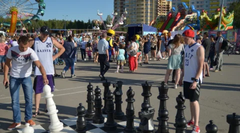 На фото №7 - к-да "Фаворит", №8 - Ф.Мурзин, №9 - "Team Aka команда", №10 - игроки различных команд из Обнинска, среди которых есть и 16-летние, и 49-летний (!), №11 - победитель на площадке, Денис Афанаскин (№23), оказался сильнее соперника и в шахматах, хотя играл чёрными фигурами...