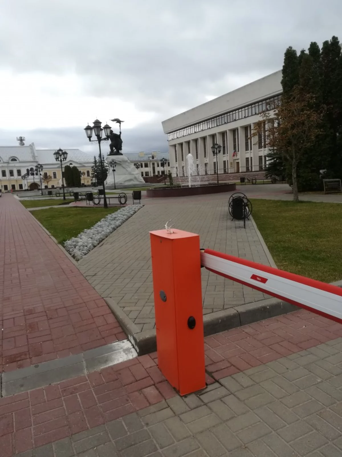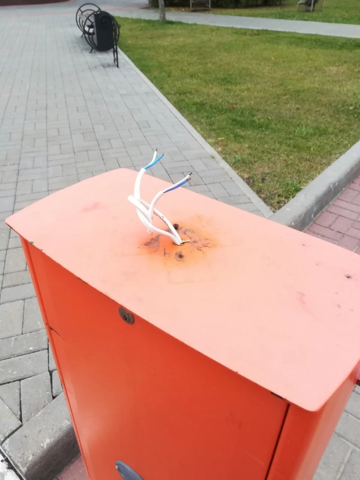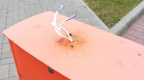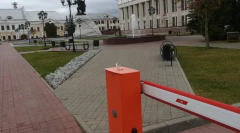На парковке у Белого Дома, на одном из шлагбаумов, оголенные провода.Электрик - в отпуске?