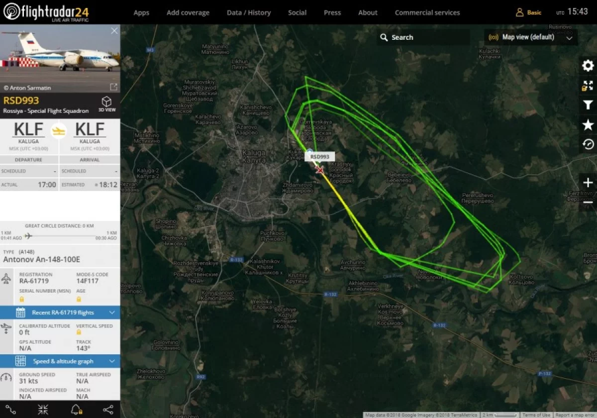 5 декабря где-то в 17 часов над Калугой нарезал «радиусы» борт СЛО «Россия», закрепленный за ФСБ, АН-148 с бортовым номером RA-61719 и с позывным RSD993. Ждем, что ли, кого?