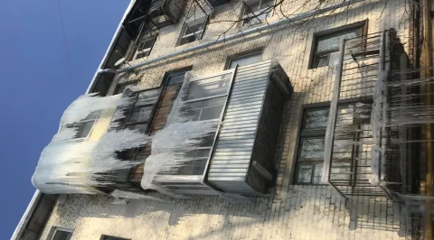 Вот такие сталактиты и сталагмиты выросли на прошлой неделе на фасаде дома номер 12 по улице Чижевского в Калуге. Если эти глыбы отвалятся, мало не покажется никому. Явлением уже заинтересовались журналисты, прямо сейчас Россия 1 снимает репортаж. Ждём в сюжет в вечерних новостях.