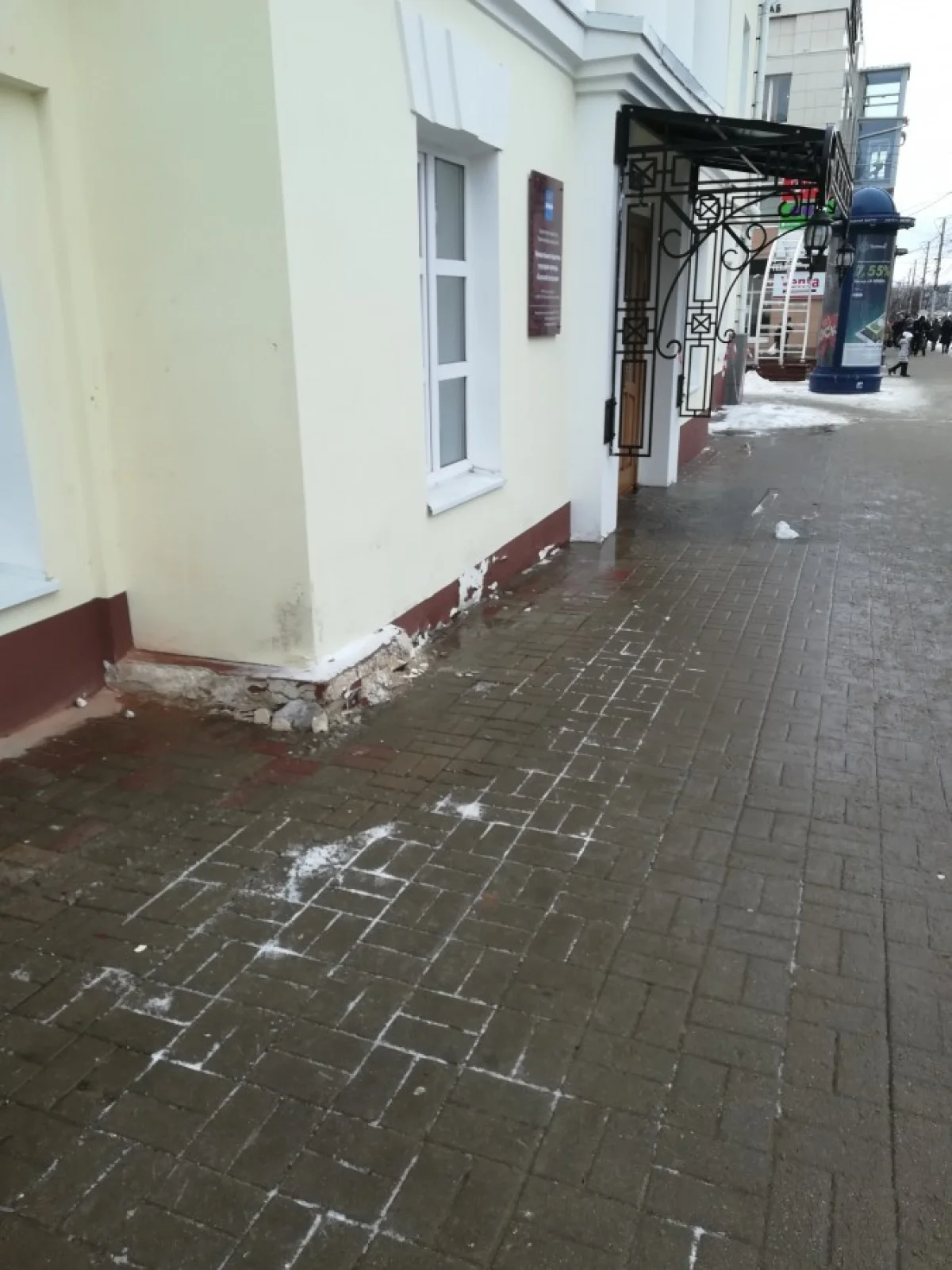 Фасад кукольного театра не перенёс первой зимы. Грустно.