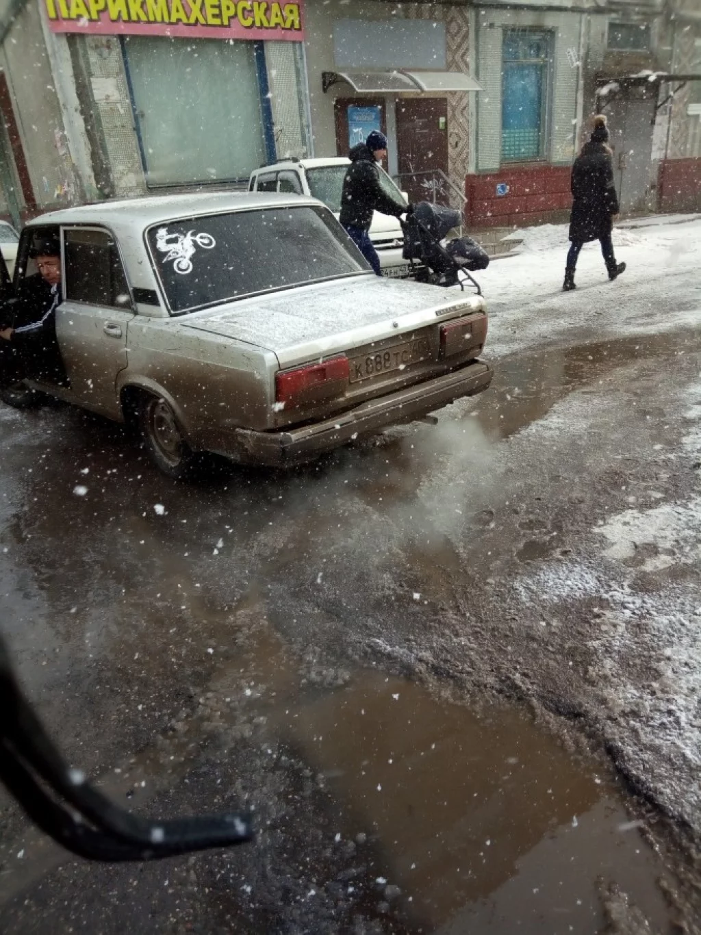 Вчера около 15 часов возле дома 188 по Тарутинской улице автохам на жигулях полностью перекрыл пешеходную дорогу перед домом. Вокруг грязь, лёд и лужи...люди с колясками протискивались между грязным автомобилем и лужами...проезд для других машин к дому (в том числе и для скорых, пожарных, такси и т.д) был полностью заблокирован...на замечание водитель Михаил отреагировал руганью и понтами...уехал только после фото
