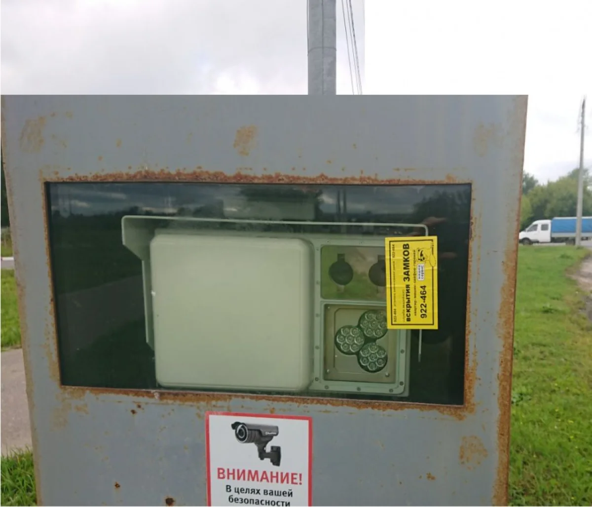 сегодня заметил прекрасное. Реклама вскрытия замков наклеена прямо на "полицейском радаре" на ул.40 лет Октября у Лукойловской заправки.